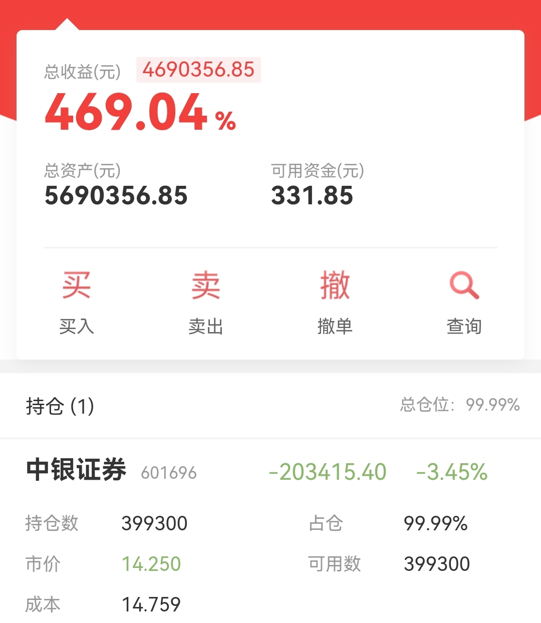 $中银证券(SH601696)$ 被套了,躺平不动。