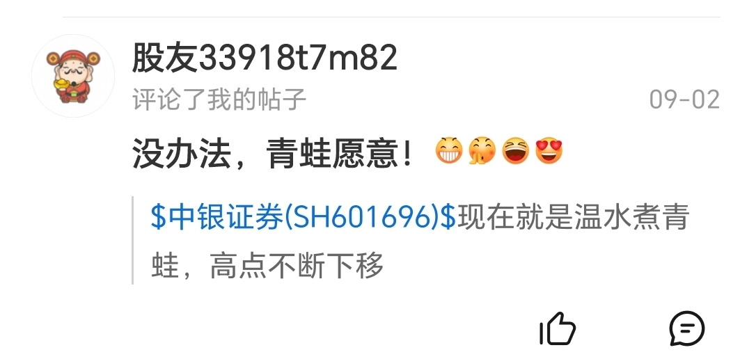 $中银证券(SH601696)$ 上一个嘴硬的草都有三米高了,你们继续嘴硬!这只青蛙已经煮烂了!