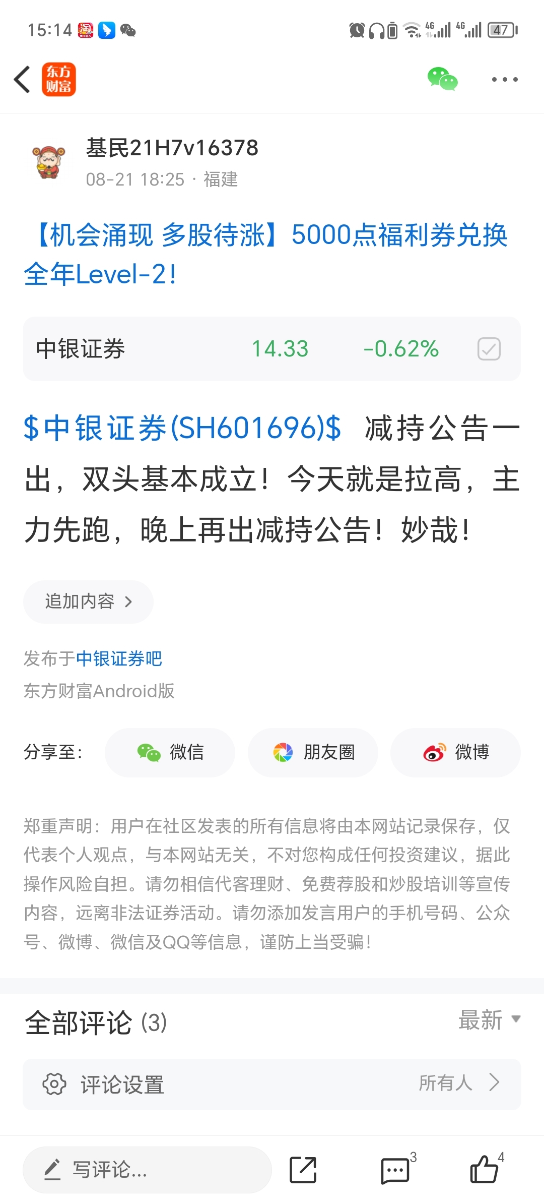 温馨提示: 1.根据《证券法》规定,禁止编造、传播虚假信息或者误导性信息,扰乱证券市场;2.用户在本社区发表的所有资料、言论等仅代表个人观点,与本网站立场无关,不对您构成任何投资建议。用户应基于自己的独立判断,自行决定证券投资并承担相应风险。《东方财富社区管理规定》