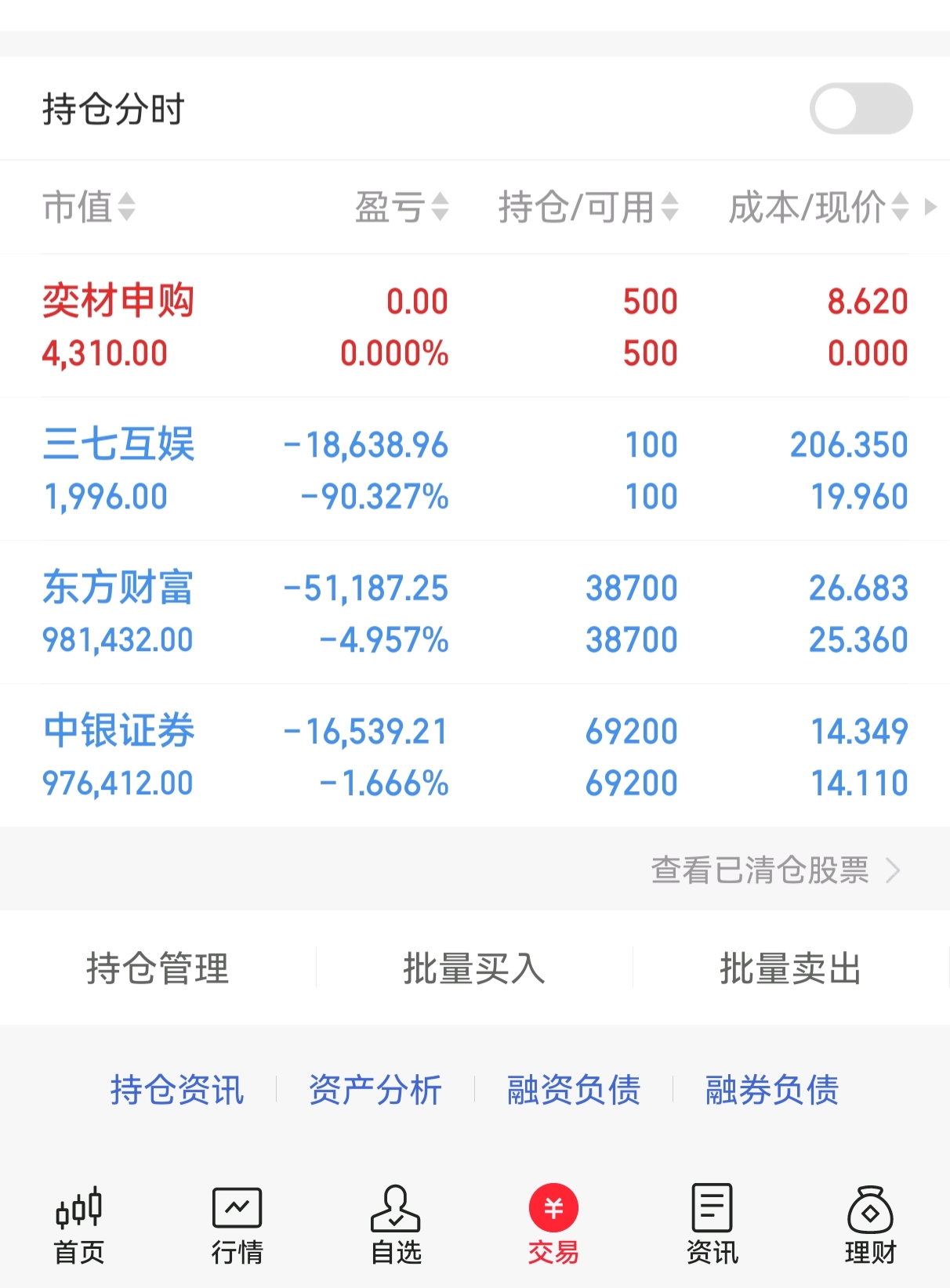 也不知道券商啥时候能支棱起来,今天这一个点确实是吃奶的劲都使出来了,本周末就出业绩了,希望能给一根大阳线,目前基本全是券商,中银证券以往可是牛过好几波的。这次买券商就前面两天是红的,一直绿,兄弟们成本应该都比我低吧$中银证券(SH601696)$ $东方财富(SZ300059)$
