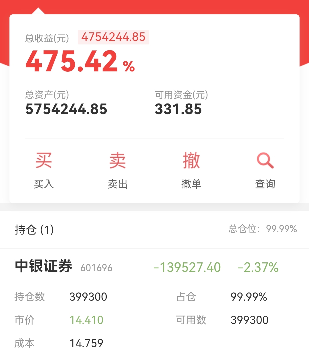 $中银证券(SH601696)$ 不动它还是涨回了一点,回本有可能吗?