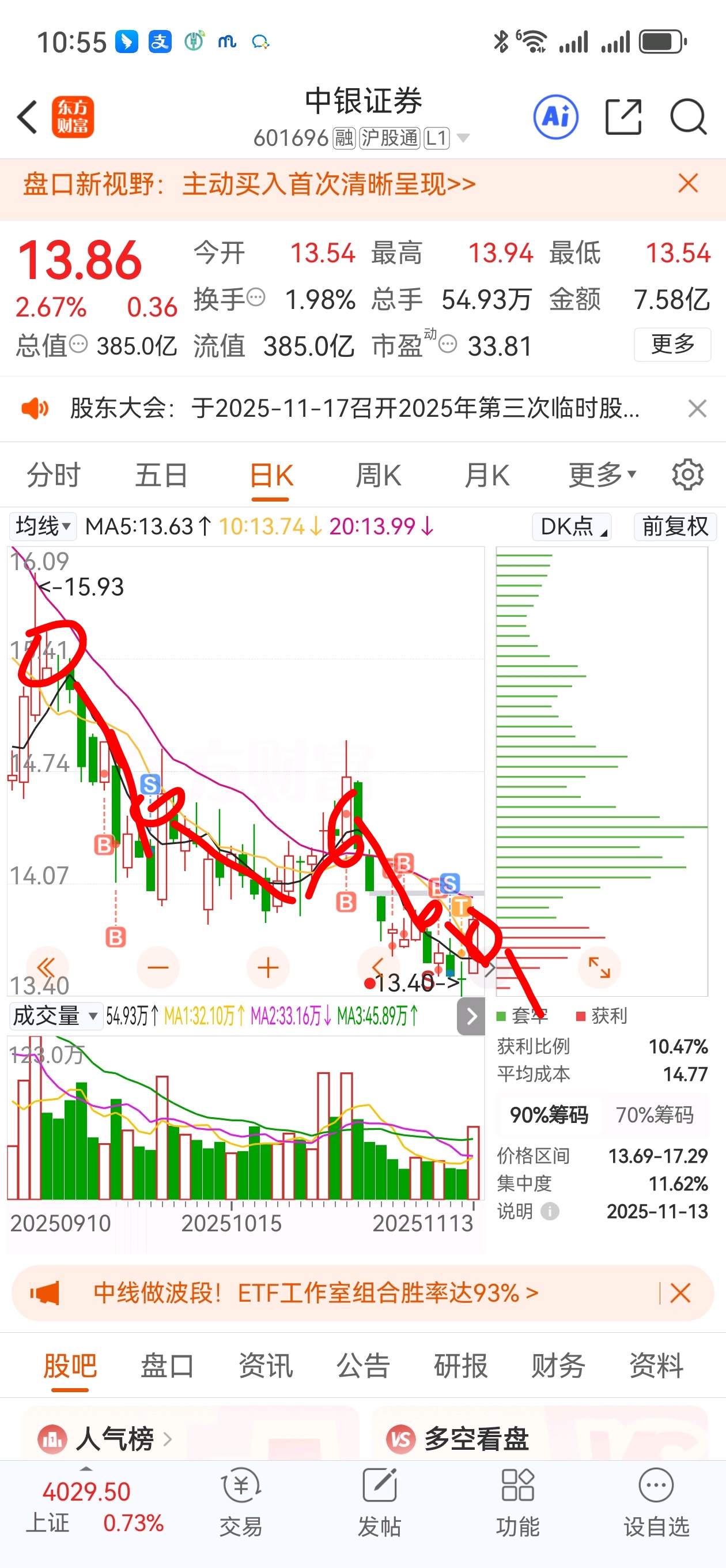 $中银证券(SH601696)$ 看图说话,我被套的死死的