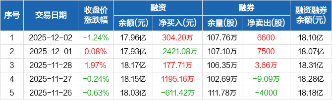 中银证券:融资净买入304.2万元,融资余额17.96亿元(12-02)