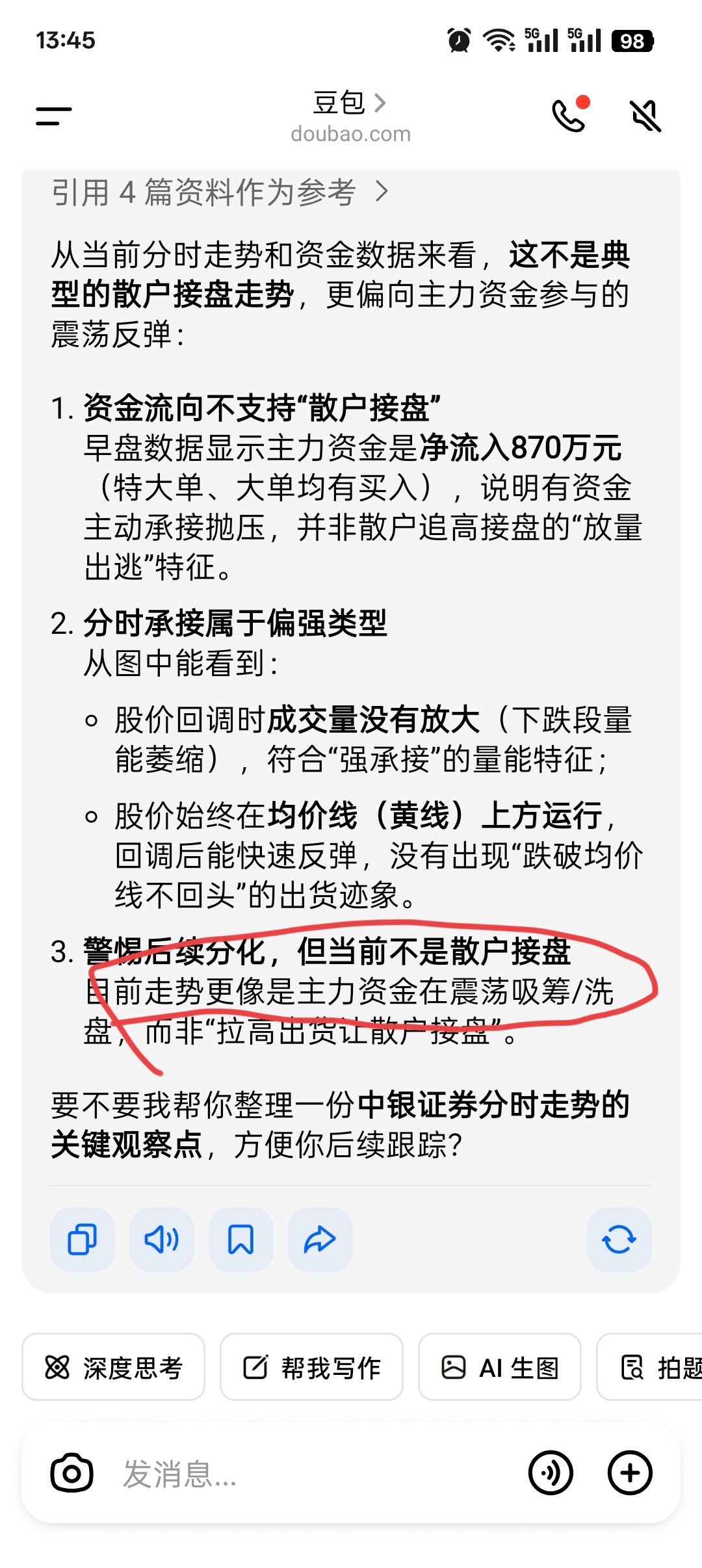 $中银证券(SH601696)$ 主力吸筹,明天还有行情,我信豆包说的。
