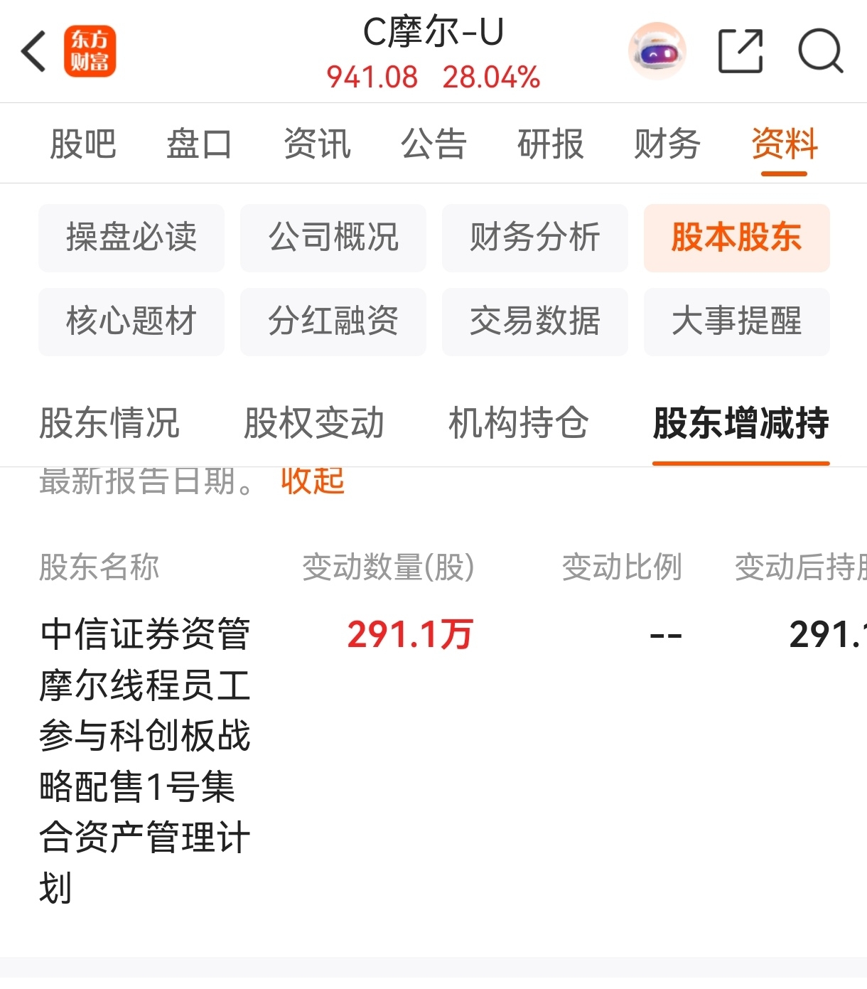 $中银证券(SH601696)$ 妈呀直接赚翻了呀,了不得,持股291.1万股。天呐