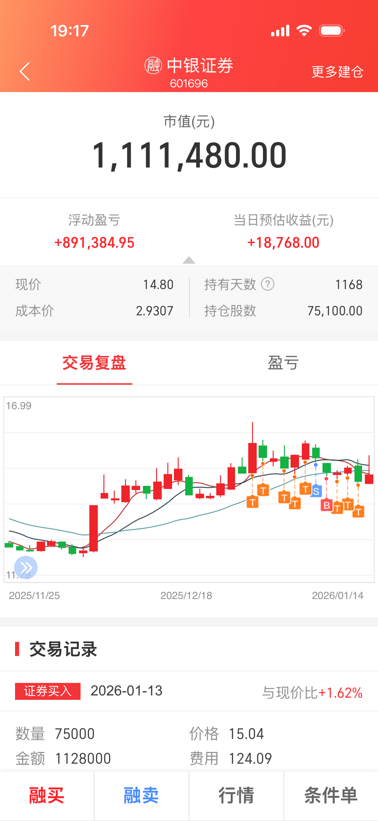 $中银证券(SH601696)$  机构持仓平均成本14.8,跟收盘价一样,躺平就可以了