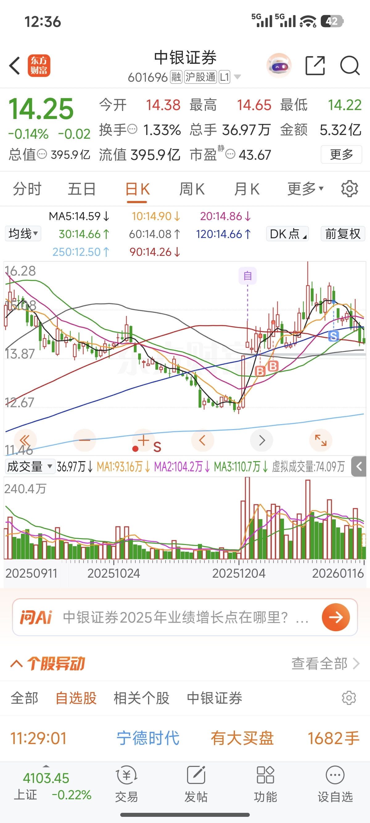 $中银证券(SH601696)$ 下个星期一准备接回来了