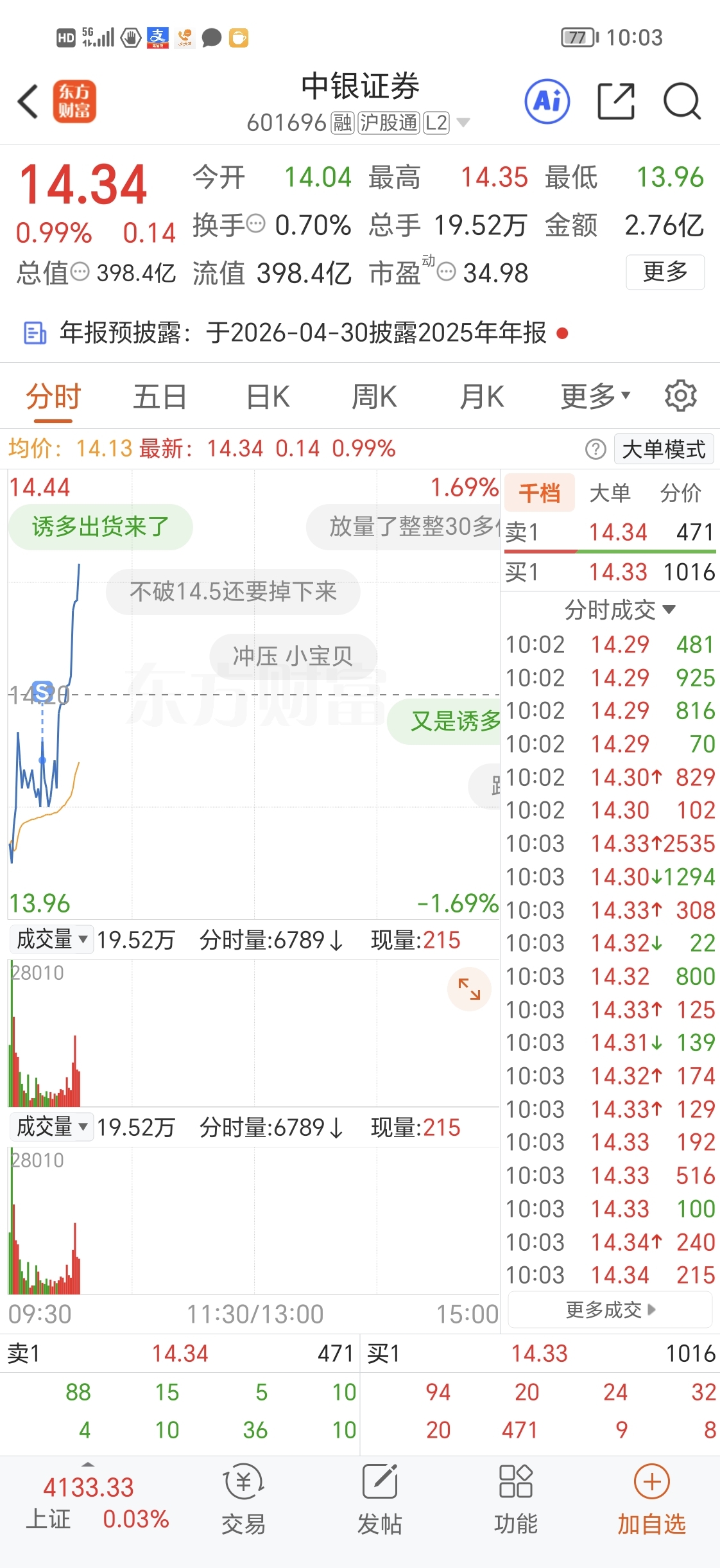 $中银证券(SH601696)$ 不管哪一个票,都是我卖了才拉起来。就差我那三瓜俩枣吗