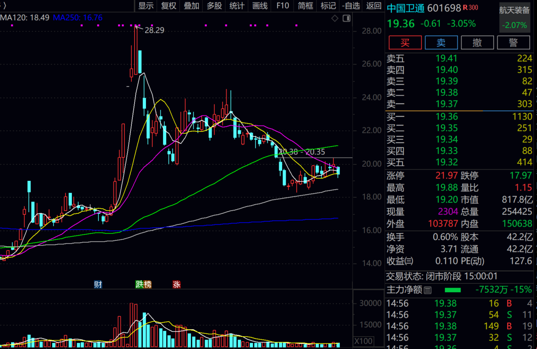 目前持有,中国,卫通,博弈短,今天洗盘的一天,明天等方向选择,我会把每天记录下来