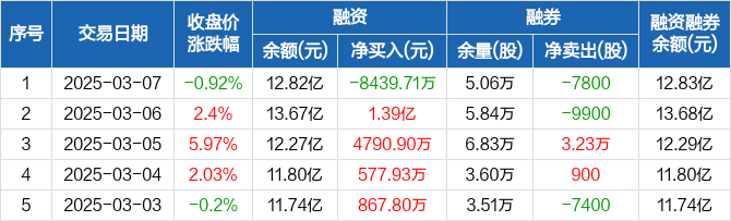 中国卫通:融资净偿还8439.71万元,融资余额12.82亿元(03-07)