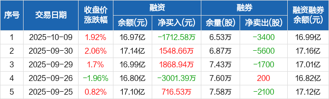 中国卫通:融资净偿还1712.58万元,融资余额16.97亿元(10-09)