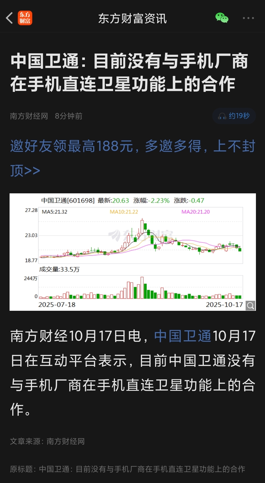 $中国卫通(SH601698)$ 跟低轨卫星没关系,现在还质疑么