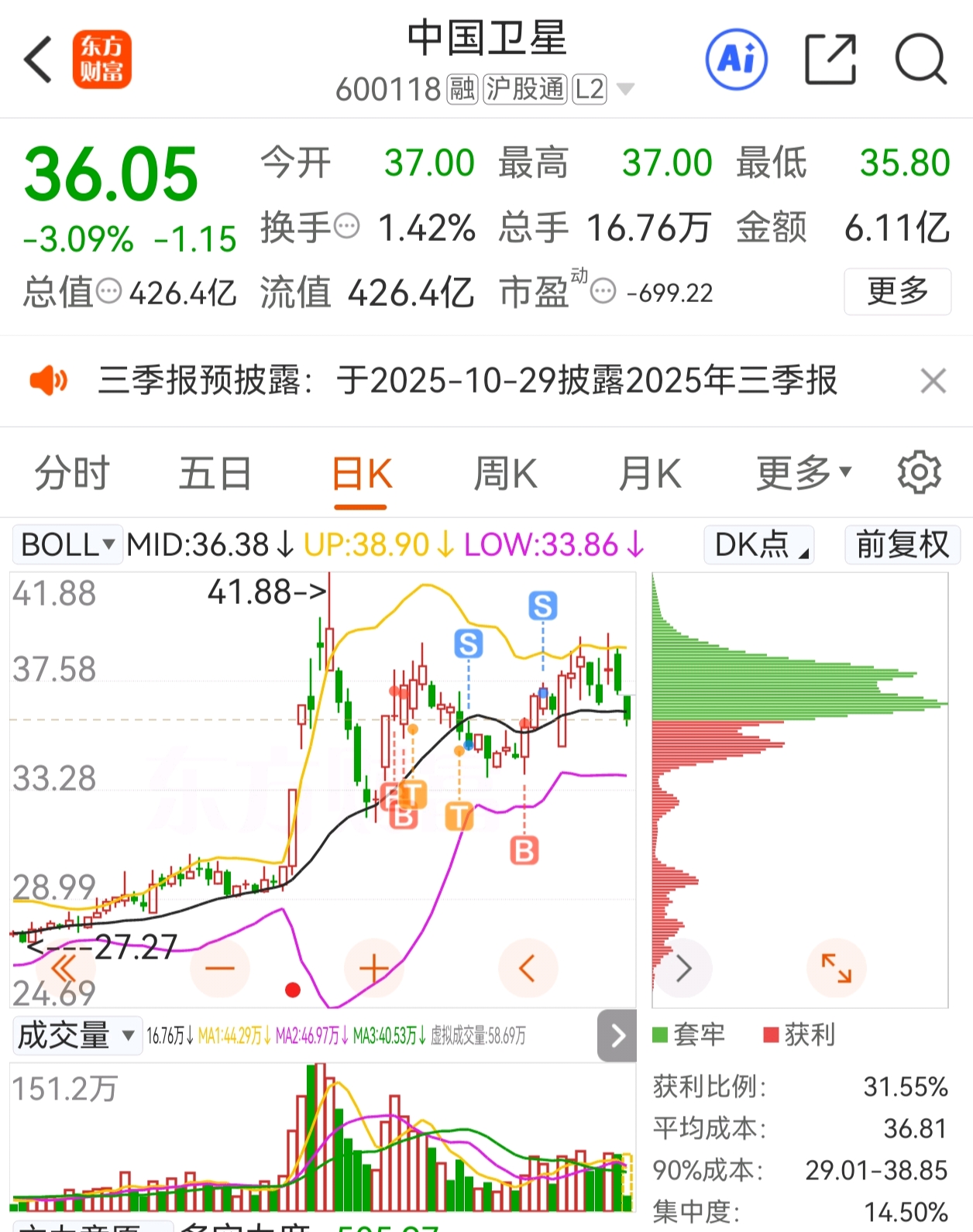 $中国卫通(SH601698)$ 中国卫通,有种跌下来,让我抄底,能不能学中国卫星