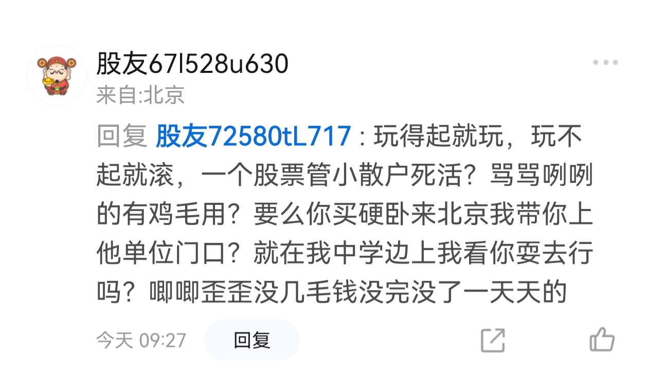 温馨提示: 1.根据《证券法》规定,禁止编造、传播虚假信息或者误导性信息,扰乱证券市场;2.用户在本社区发表的所有资料、言论等仅代表个人观点,与本网站立场无关,不对您构成任何投资建议。用户应基于自己的独立判断,自行决定证券投资并承担相应风险。《东方财富社区管理规定》