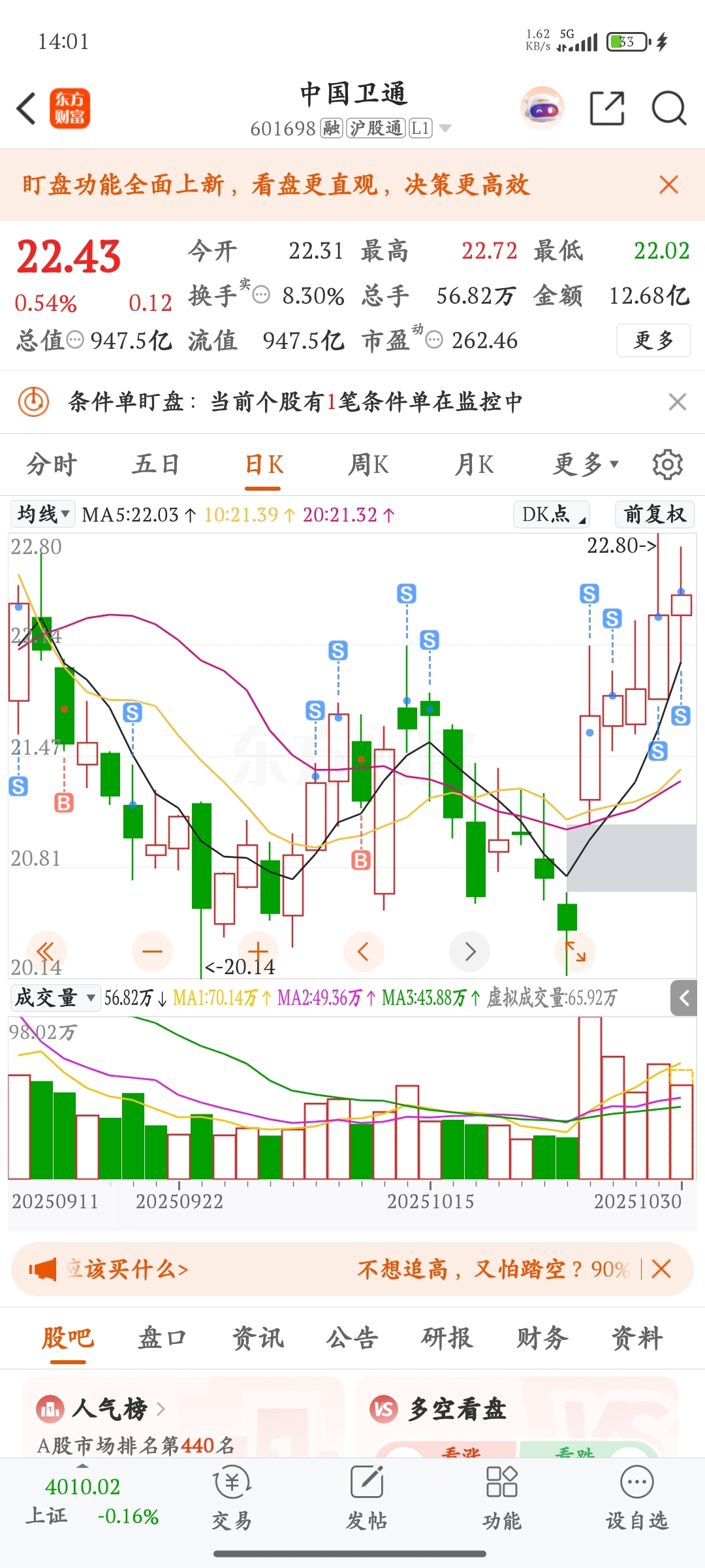 $中国卫通(SH601698)$ 卖不完,根本卖不完
