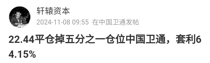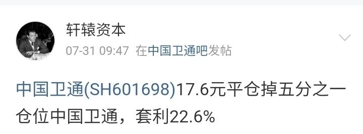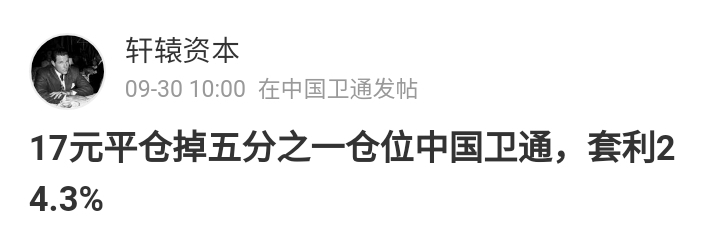 21.9元平仓掉剩余全部仓位中国卫通,套利60.2%