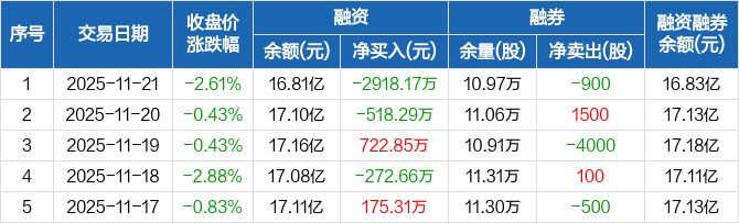 中国卫通:融资净偿还2918.17万元,融资余额16.81亿元(11-21)