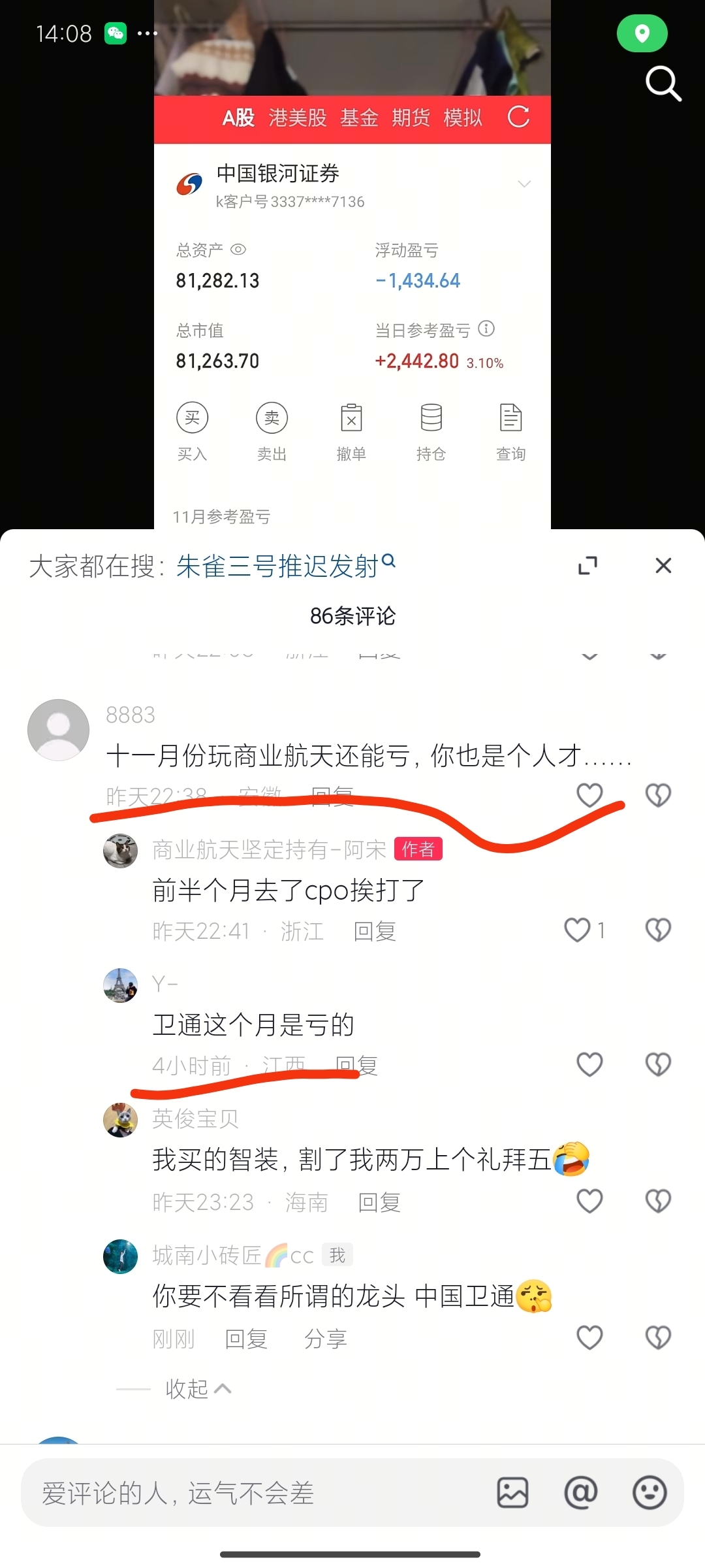 $中国卫通(SH601698)$ 大周末的,刷到这个,真是扎心