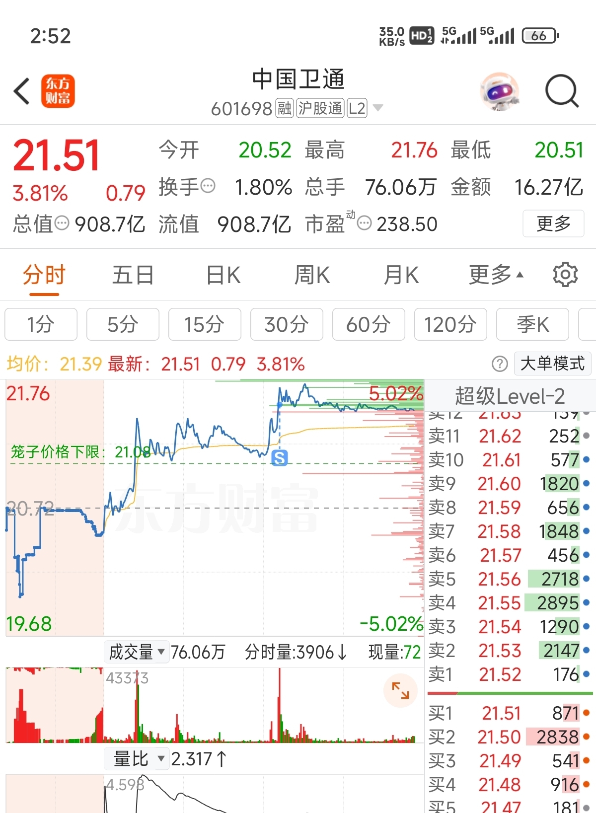 $中国卫通(SH601698)$ 兄弟们发财啊,短期不来了
