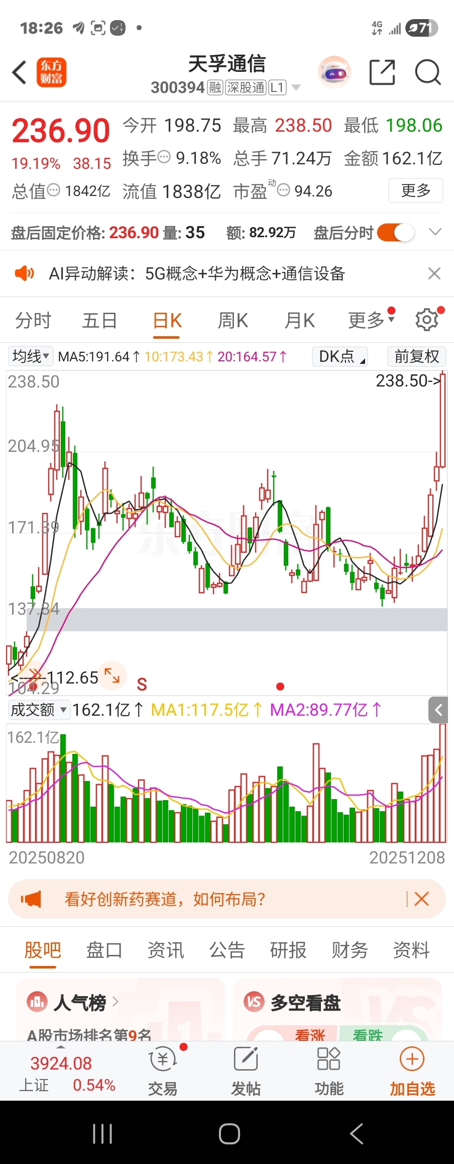$中国卫通(SH601698)$ 一1800亿盘拉20点都如此顺滑,