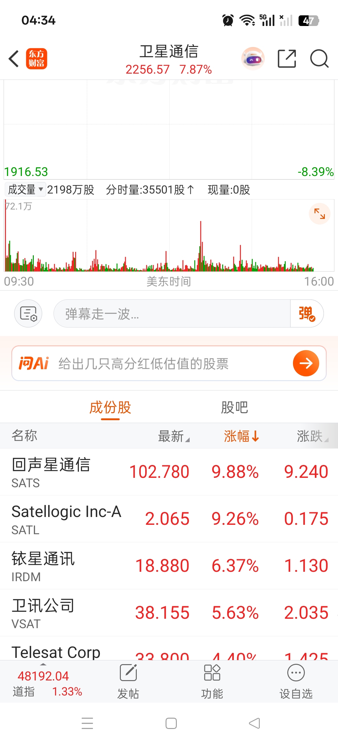$中国卫通(SH601698)$ 老美的卫星通信拉冒烟了,跟不跟