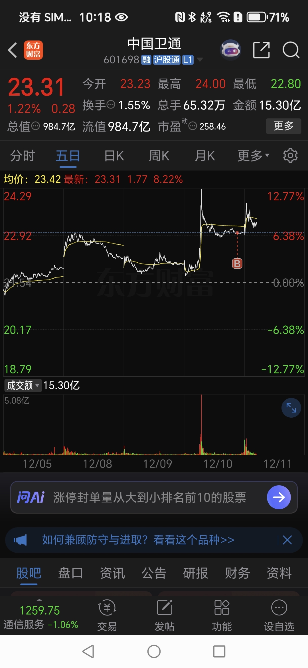 $中国卫通(SH601698)$ 4点太少了不想要!想信拉涨停板!尾盘拉一把