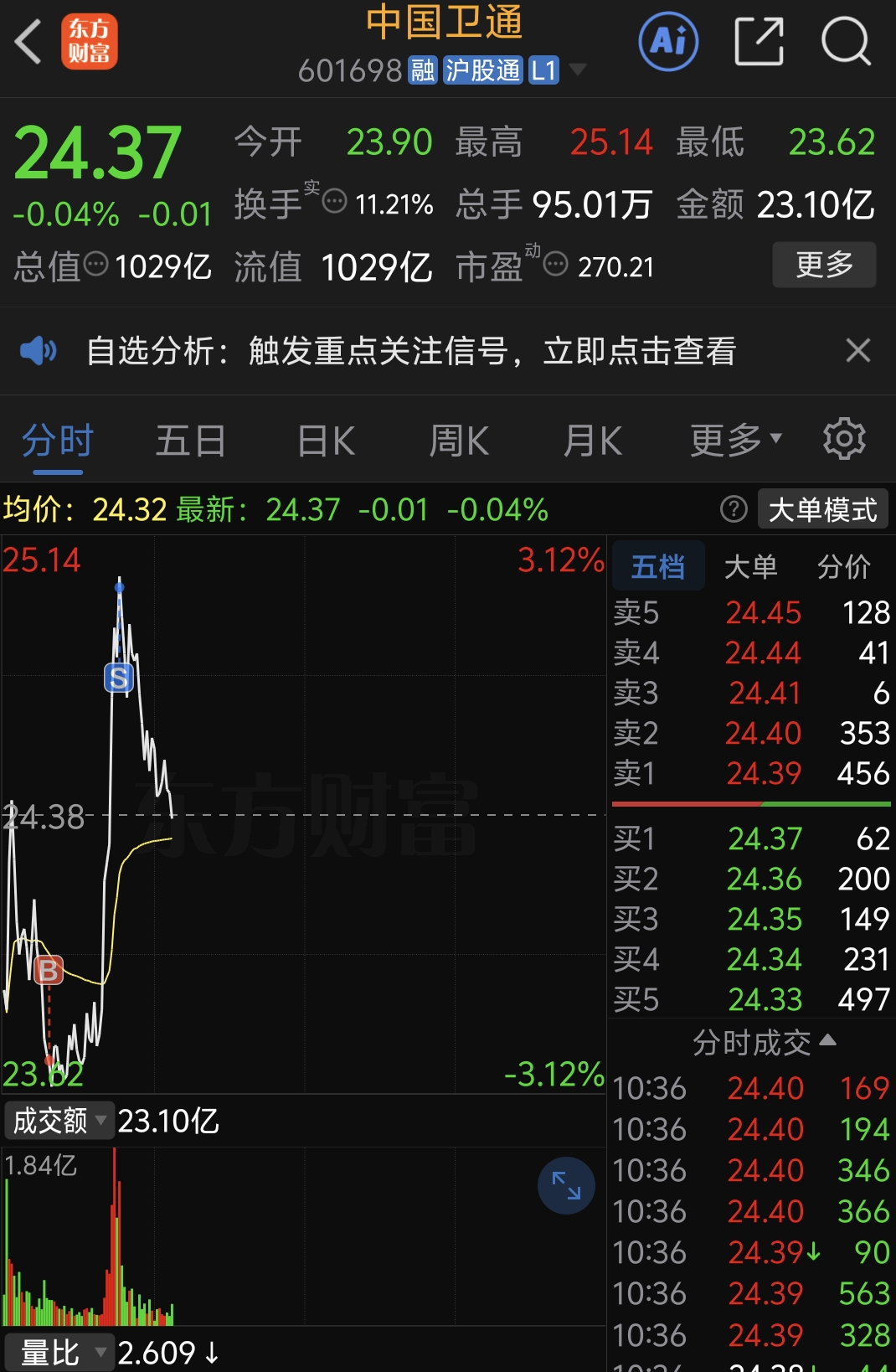 $中国卫通(SH601698)$ 迄今最NB的盲挂单,最低买/最高卖