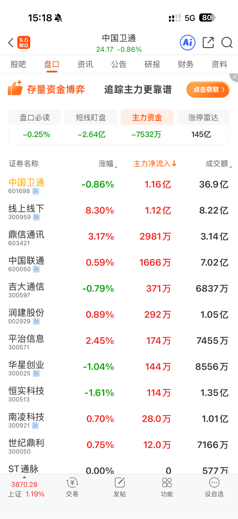 $中国卫通(SH601698)$ 今天调整机构流入这么多怕什么,黑色星期四看明天大盘吧