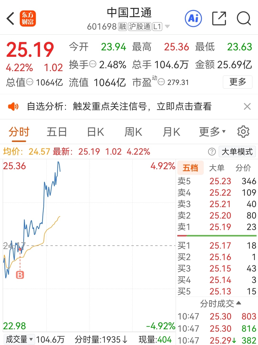 $中国卫通(SH601698)$ 我是看好你的,不到30元以上不会卖你