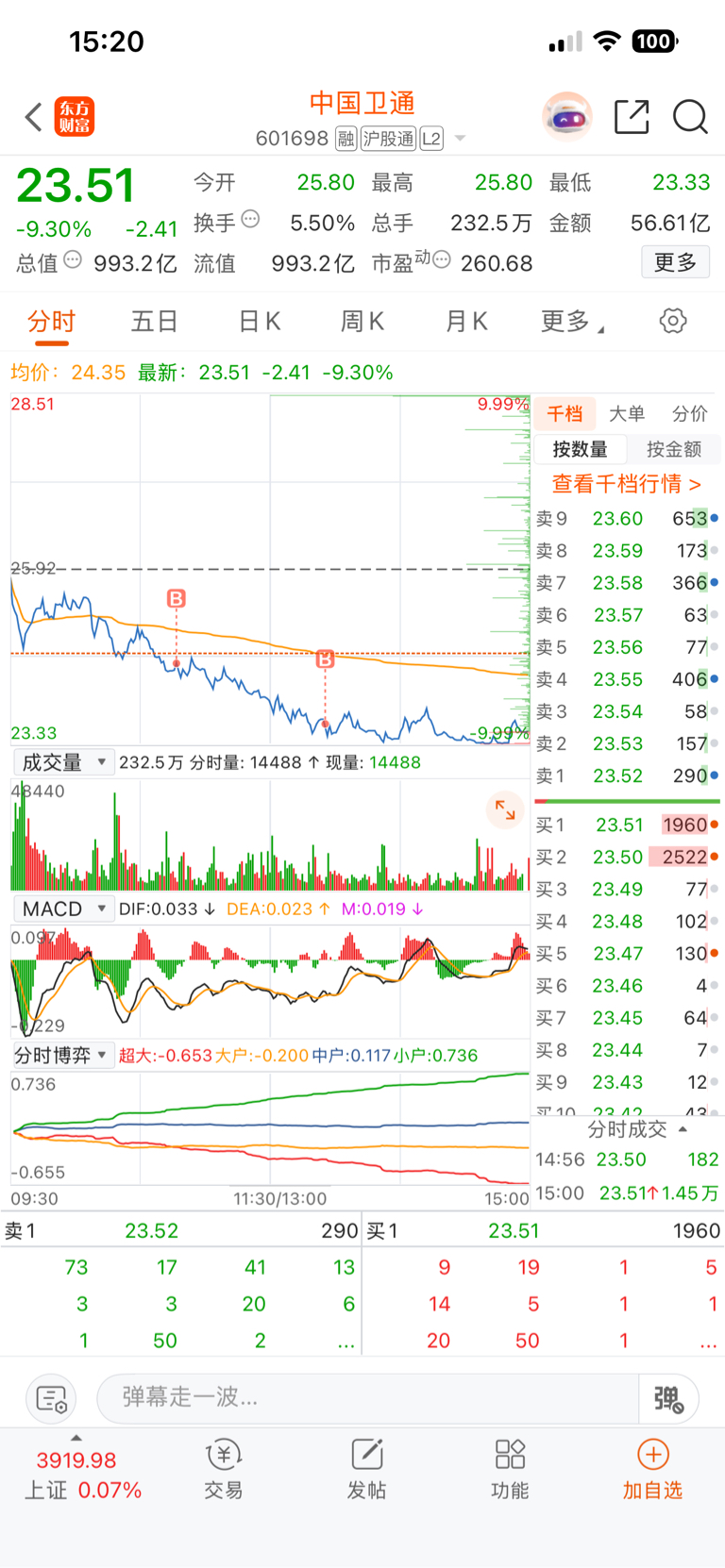 $中国卫通(SH601698)$ 飞刀接的准不准