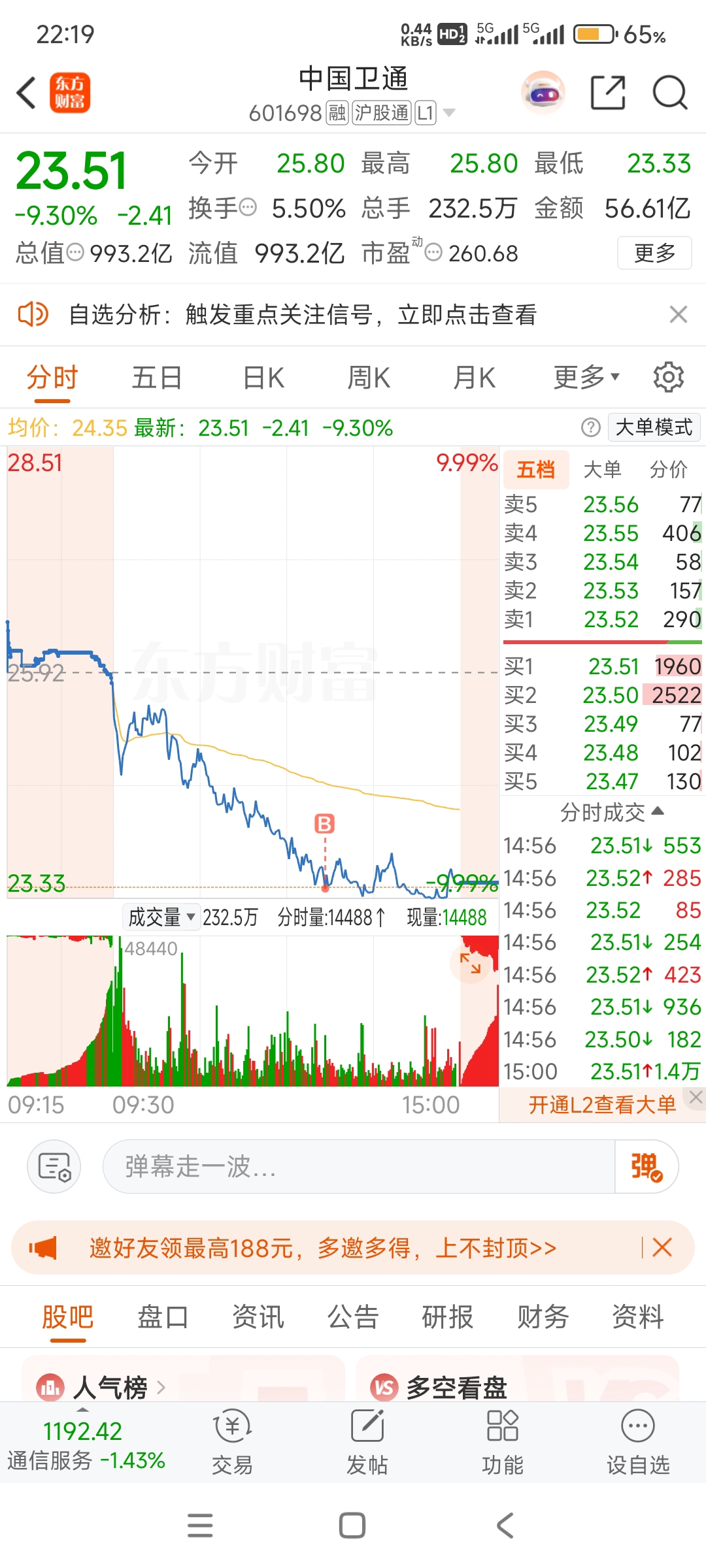 $中国卫通(SH601698)$ 我今天捡到宝了。