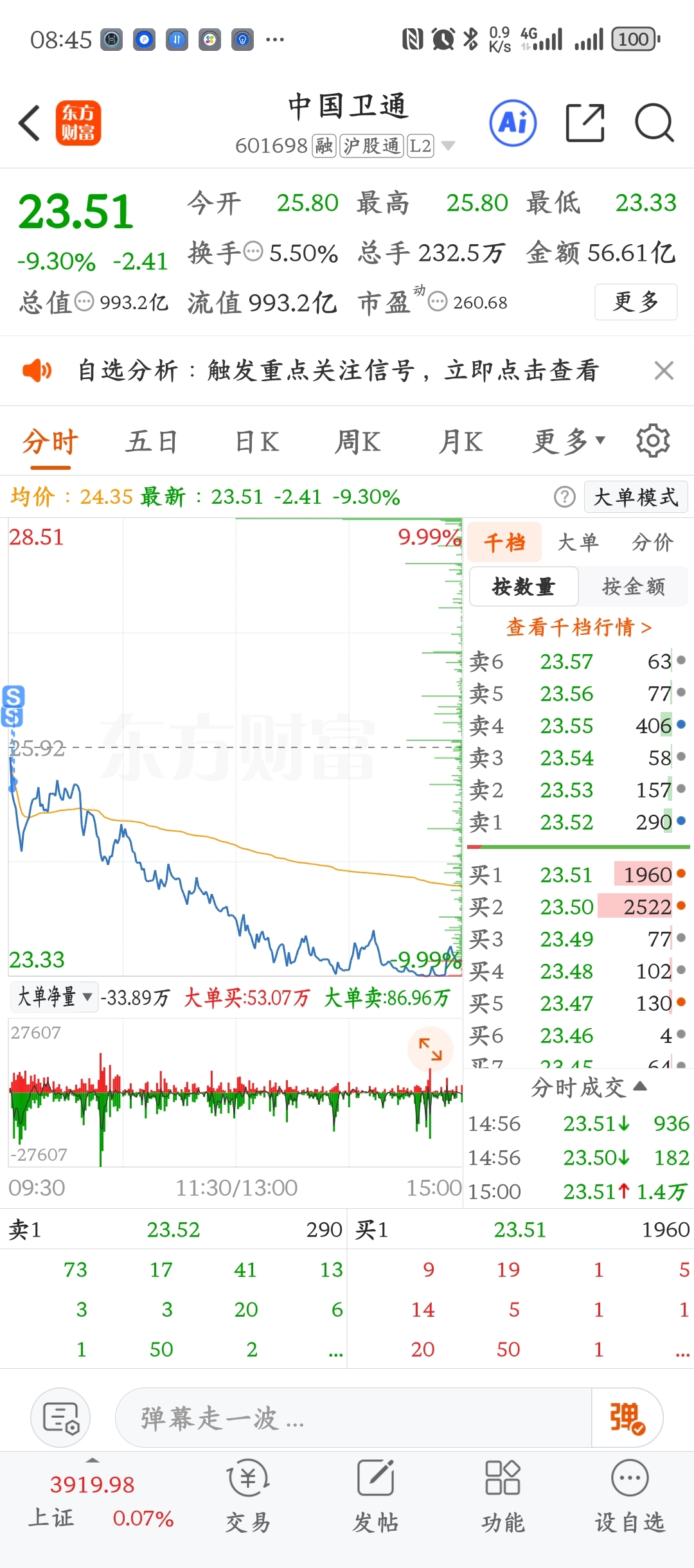 $中国卫通(SH601698)$ 早盘跑了,庆幸啊,少亏8个点