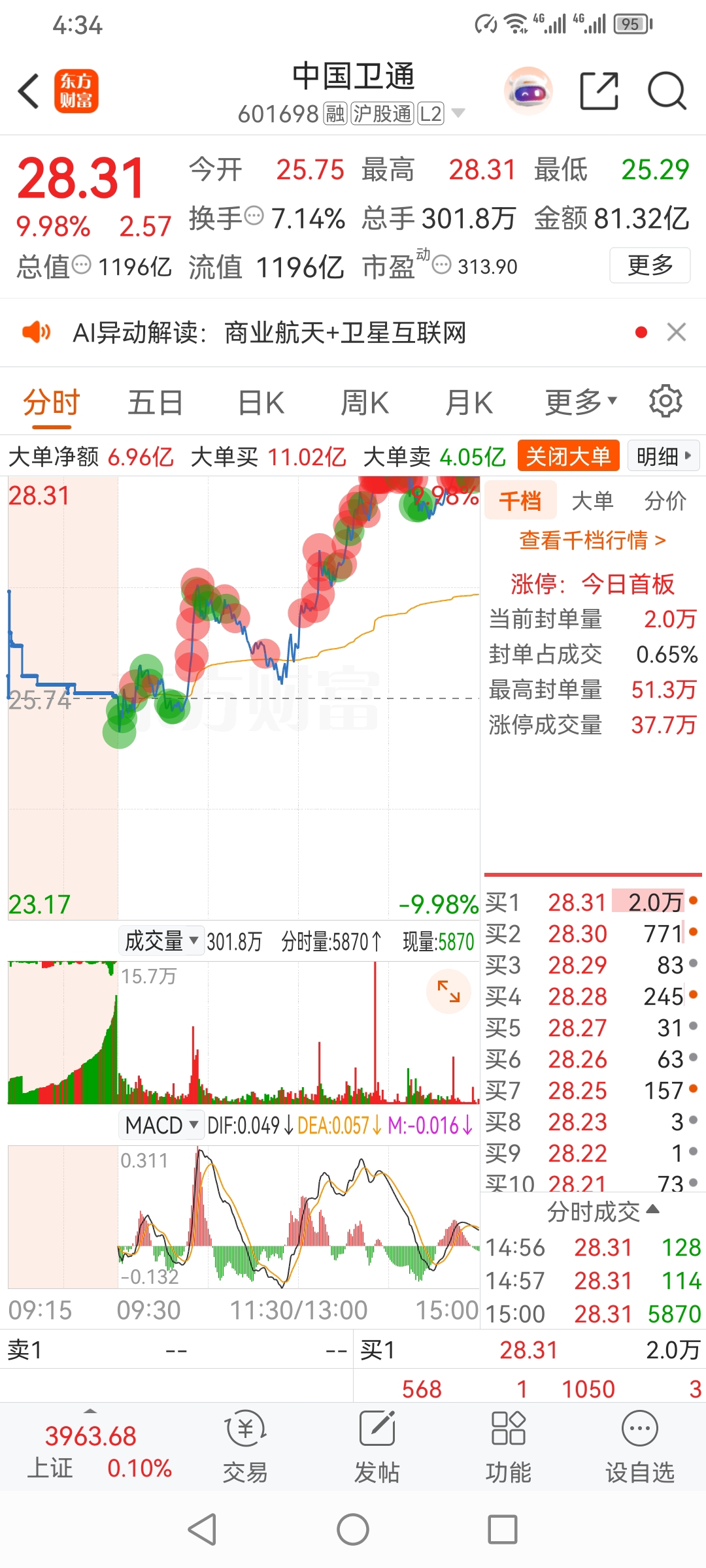 @妙想@炒股冠军军哥@炒股冠军方军中国卫通,军哥游资股票,集合竞价分析,主力,涨