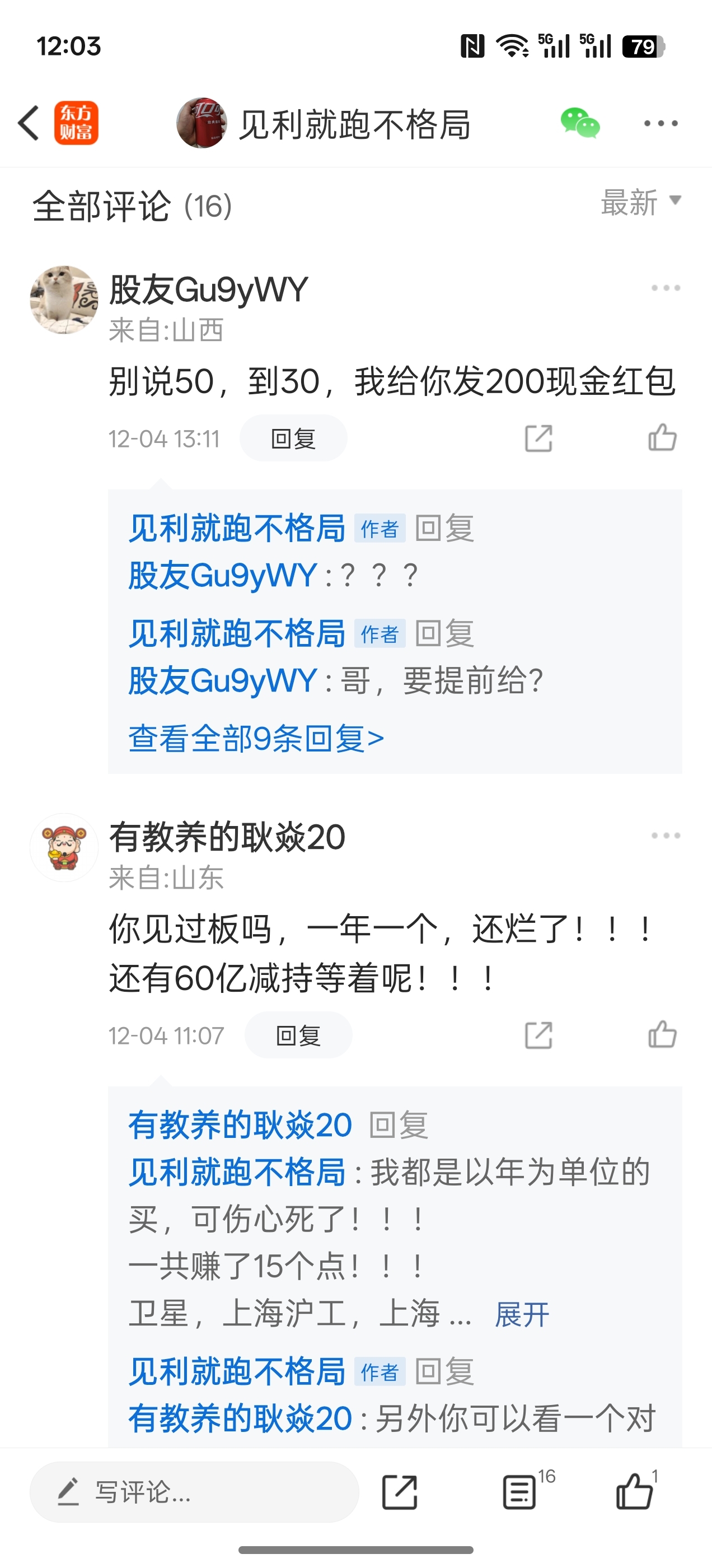 温馨提示: 1.根据《证券法》规定,禁止编造、传播虚假信息或者误导性信息,扰乱证券市场;2.用户在本社区发表的所有资料、言论等仅代表个人观点,与本网站立场无关,不对您构成任何投资建议。用户应基于自己的独立判断,自行决定证券投资并承担相应风险。《东方财富社区管理规定》