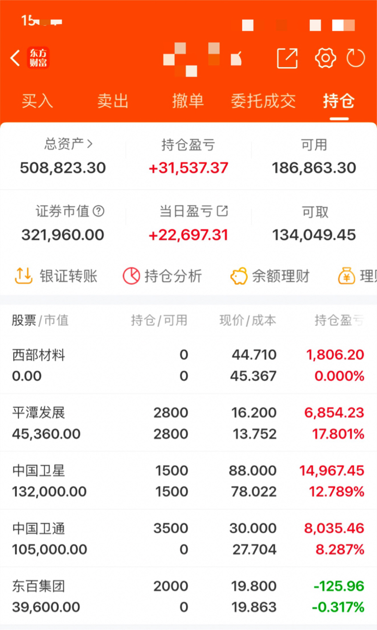 目前持有:$中国卫通(SH601698)$ $中国卫星(SH600118)$ $平潭发展(SZ000592)$ 东百集团