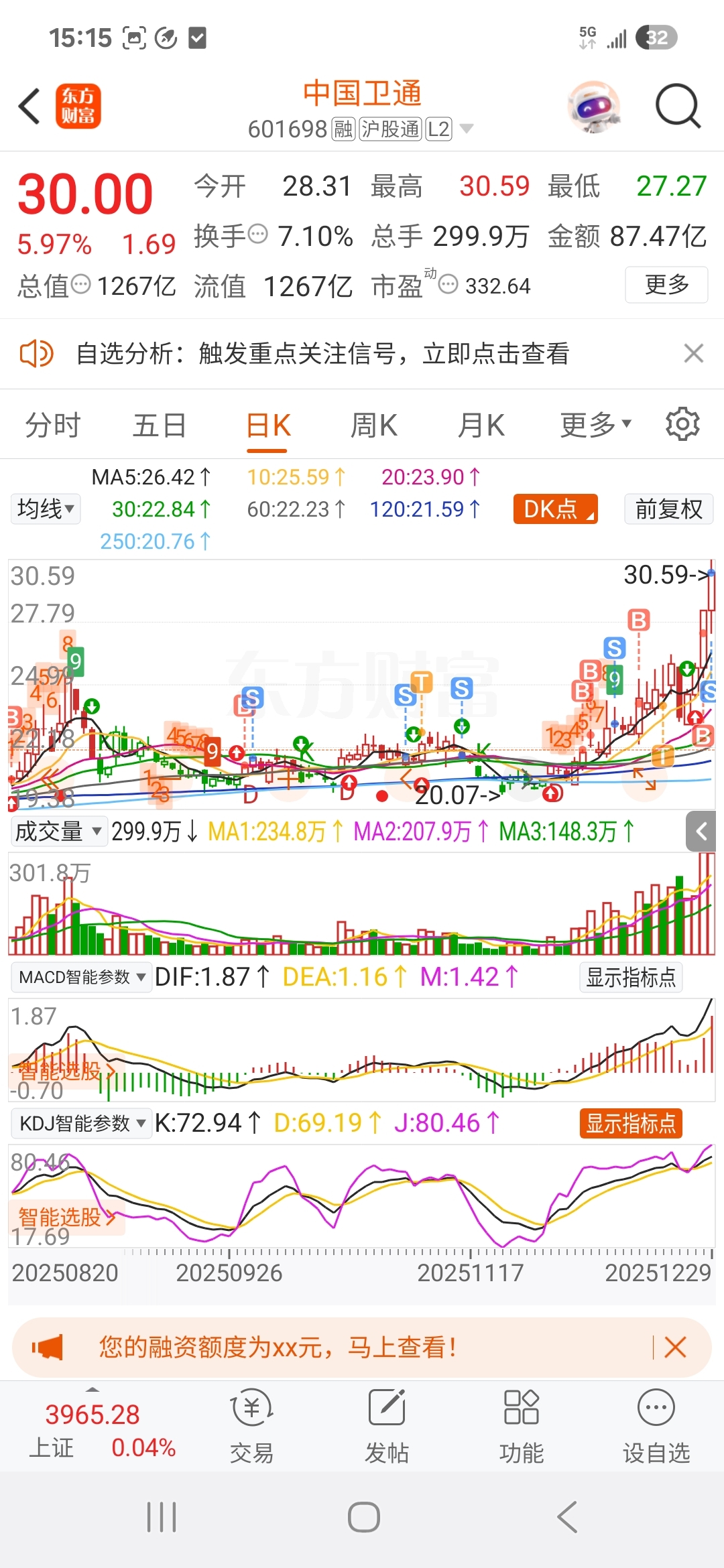 $中国卫通(SH601698)$ 8月20日重仓,中间不该卖的减仓了,真想抽自己的。今天减1/3仓位,挣不了大钱就是因为恐高。