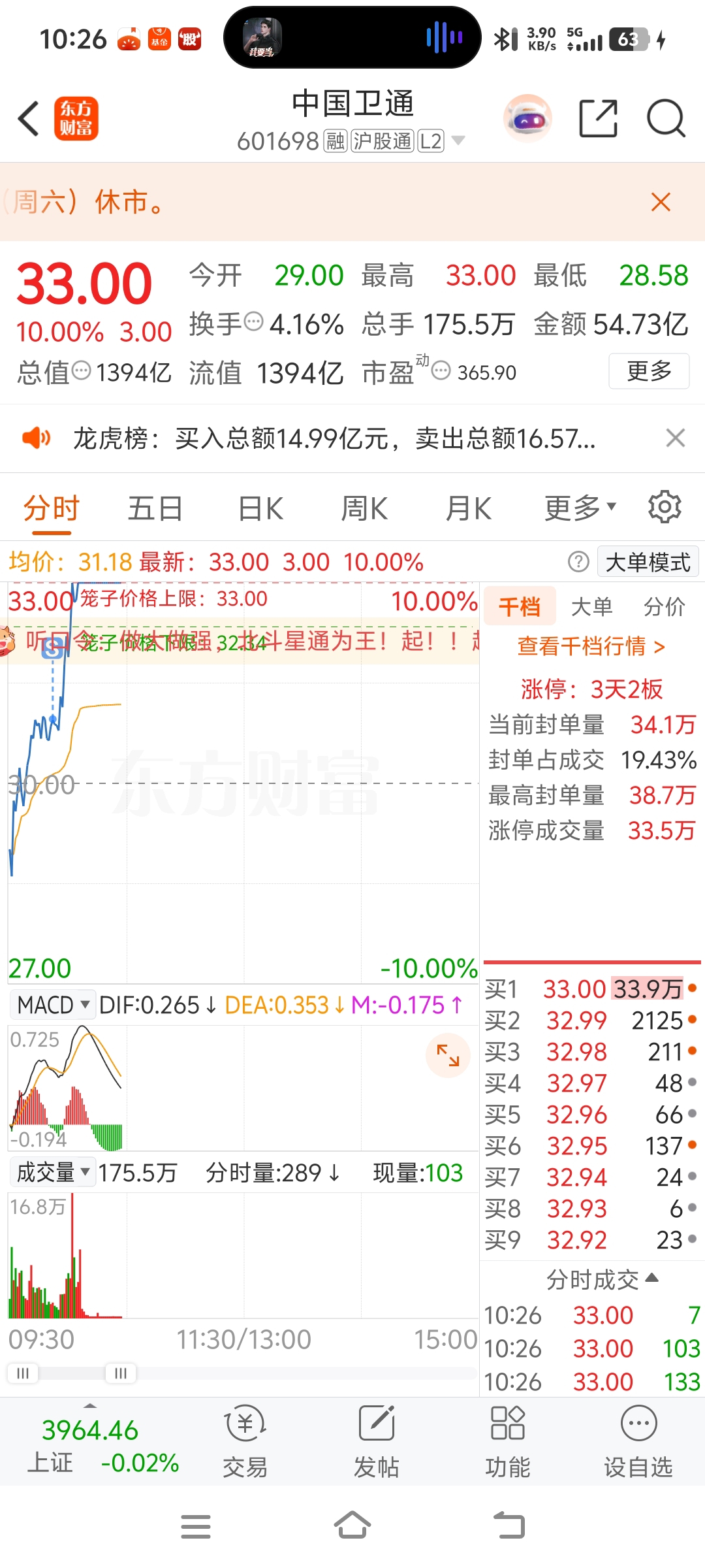 $中国卫通(SH601698)$ 昨天是儿子,今天当爹了!以为你又不行,卖在起飞前,哎!