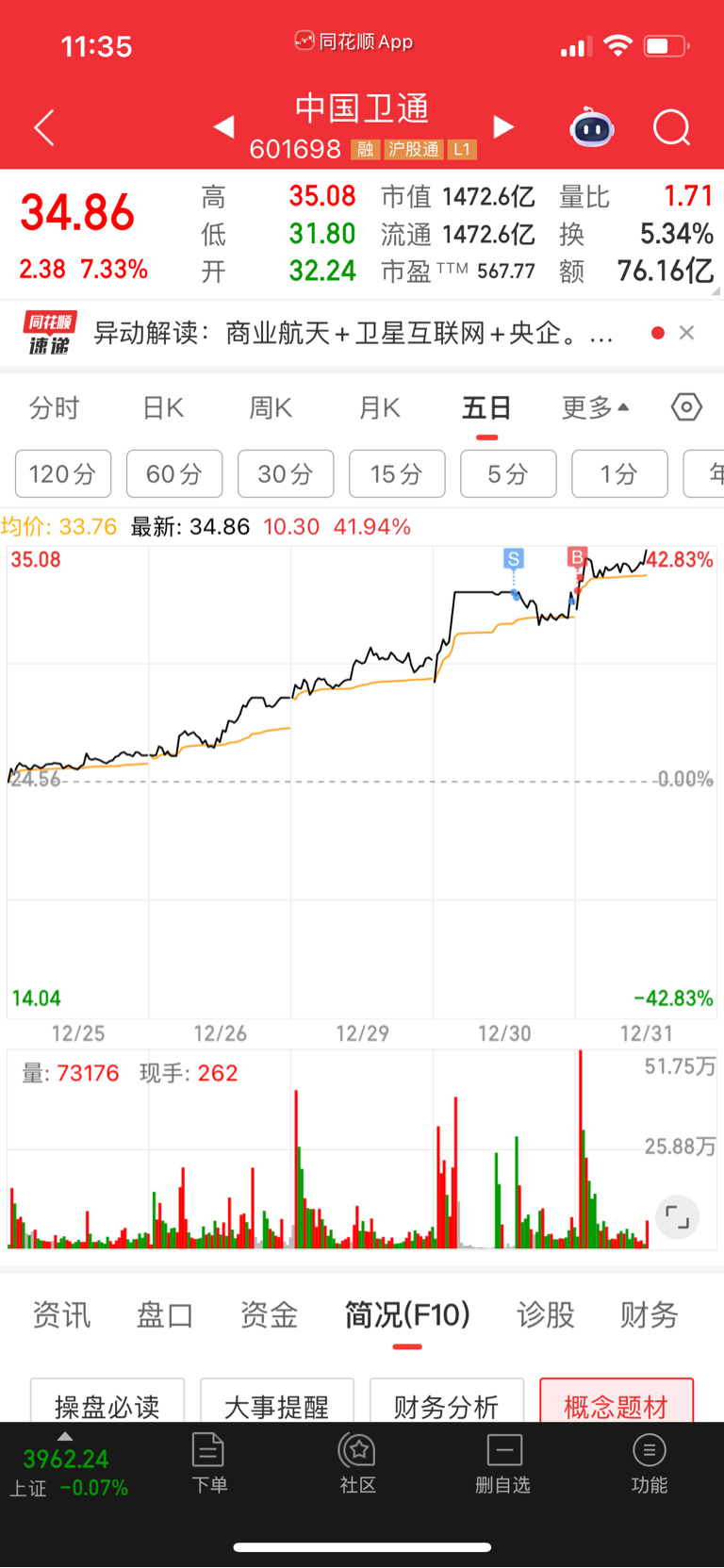 $中国卫通(SH601698)$ 看到卫星板了就放心了,跳水的时候尿都吓出来了