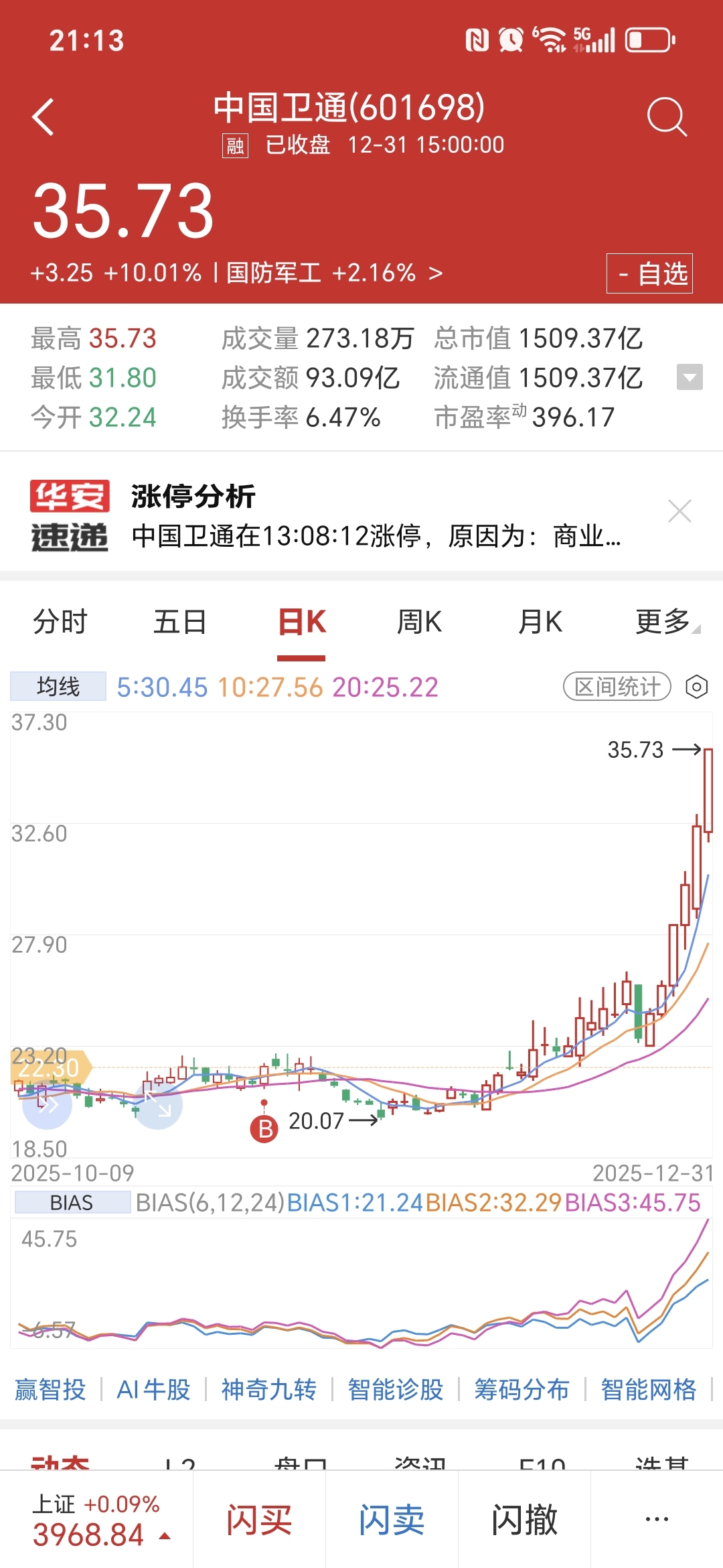 $中国卫通(SH601698)$ 我也是佩服我自己!