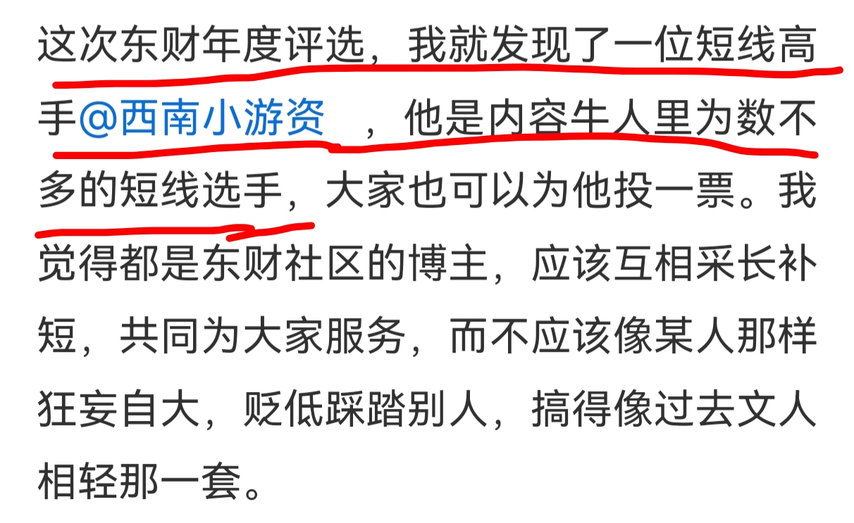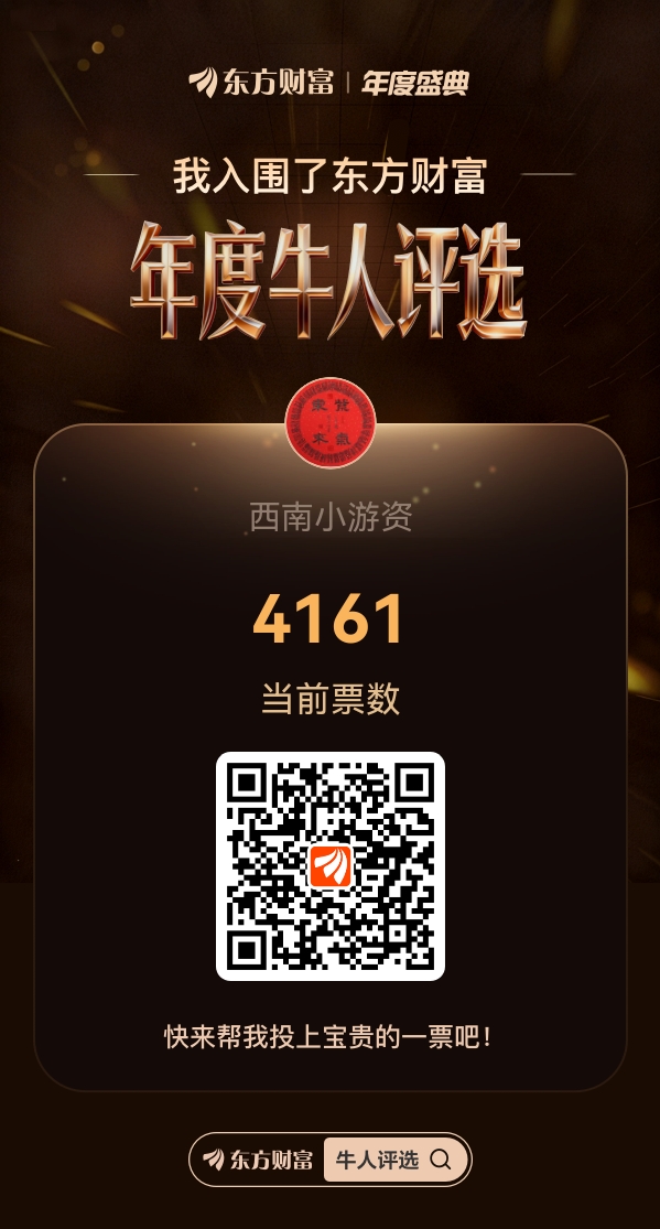 今日提笔,满心都是感恩——特别致谢东方财富平台上的传奇前辈“花丛冷眼”,在2025年度牛人评选的关键阶段,您主动为我这个“西南小游资”站台拉票,这份认可与支持,让我既感动又备受鼓舞!