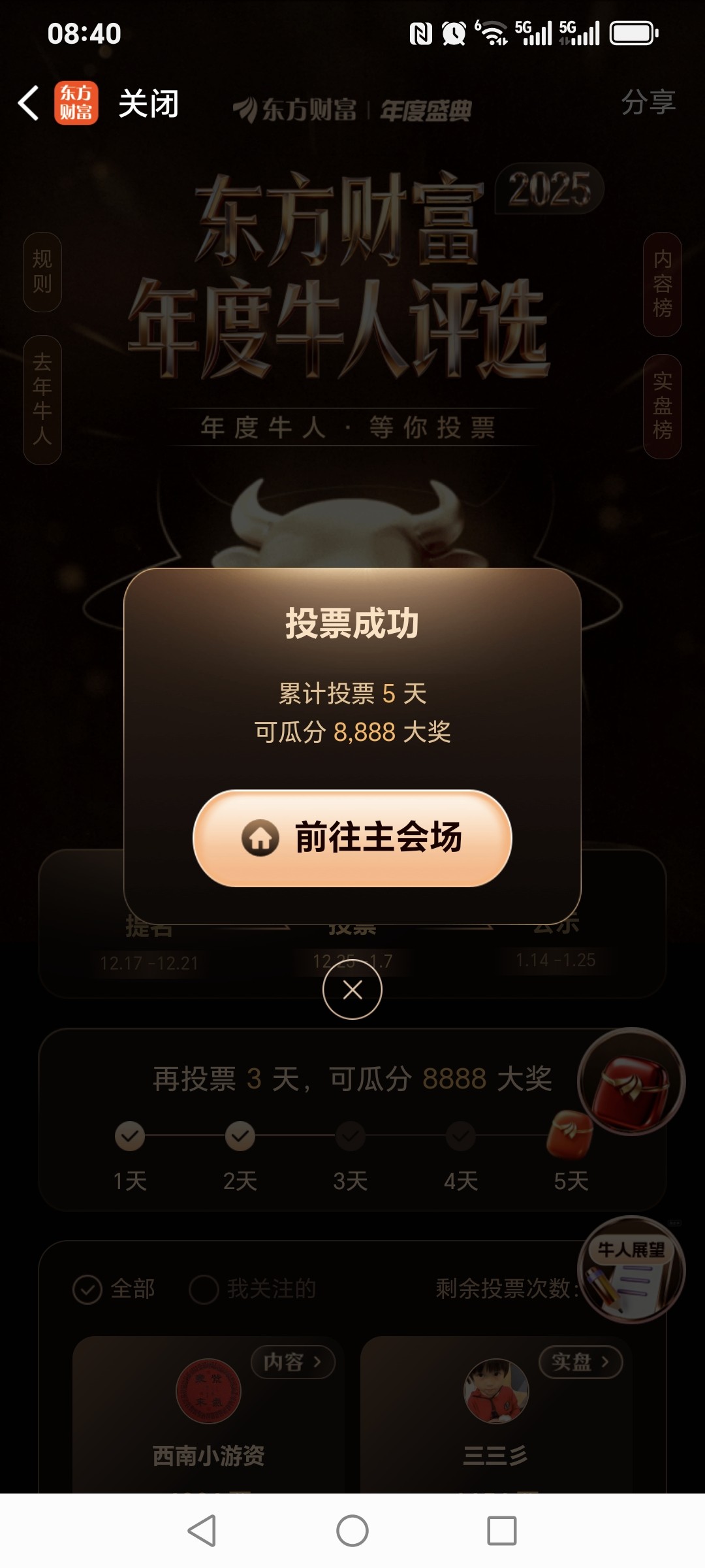 大家记得每天投票支持下东哥以及花前辈,投票持续到1.7号,感谢大家的助力!