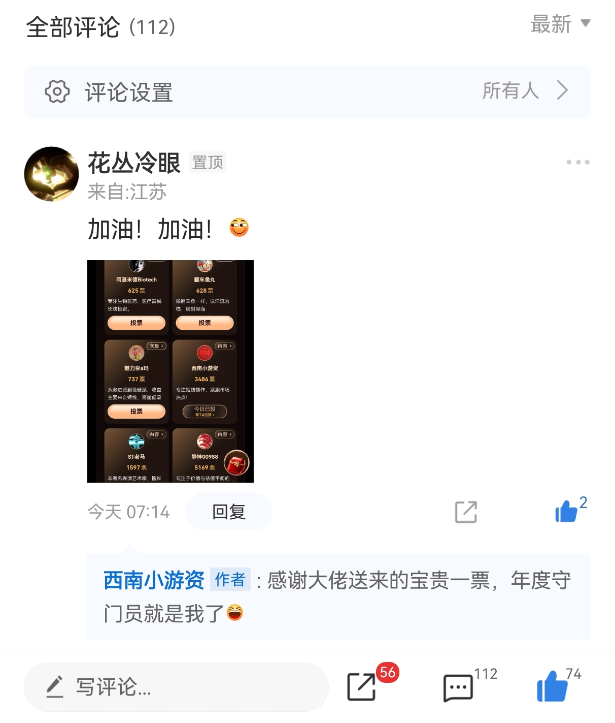 自参评以来,从粉丝朋友的自发转发到前辈的公开力挺,每一份支持都让我深知,这份荣誉从来不止于个人,更承载着大家对真实、有价值的投资分享的期待。未来,我会继续以前辈为榜样,坚守初心,在分享市场热点、交易策略的路上保持真诚与专业,不辜负前辈的提携,也不辜负每一位支持者的信任。