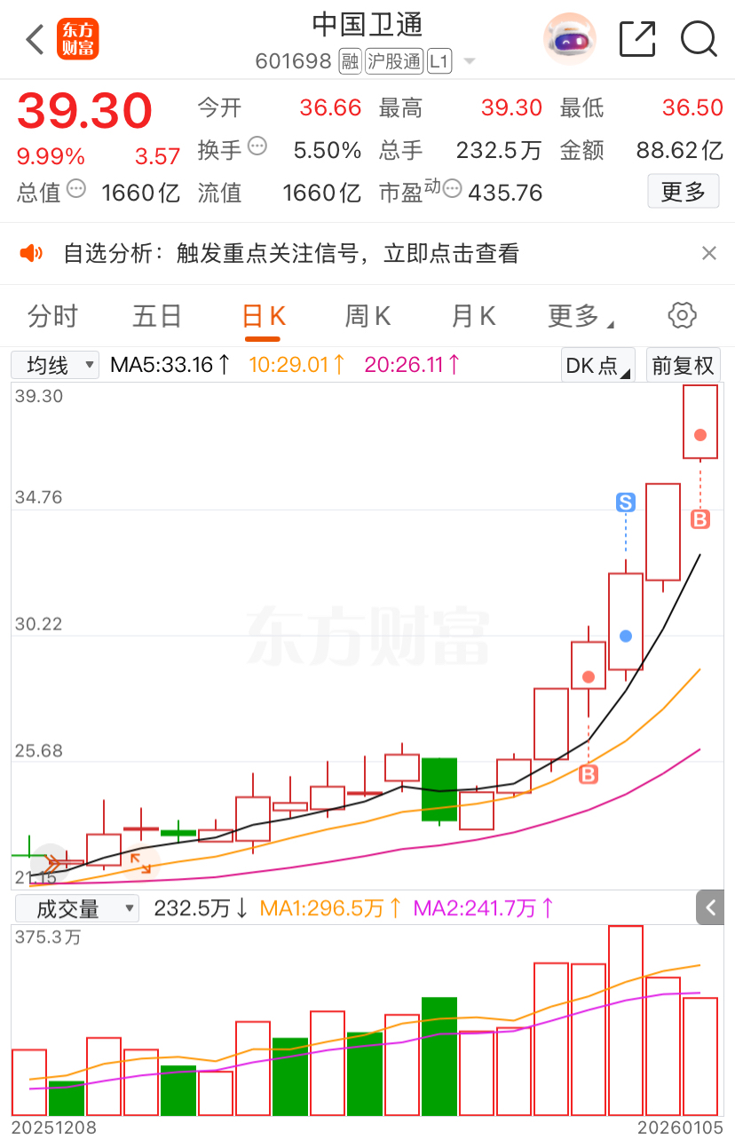 $中国卫通(SH601698)$ 今天继续切换,去弱留强,久之洋卖出反手再次加仓中国卫通继续格局,嘿嘿