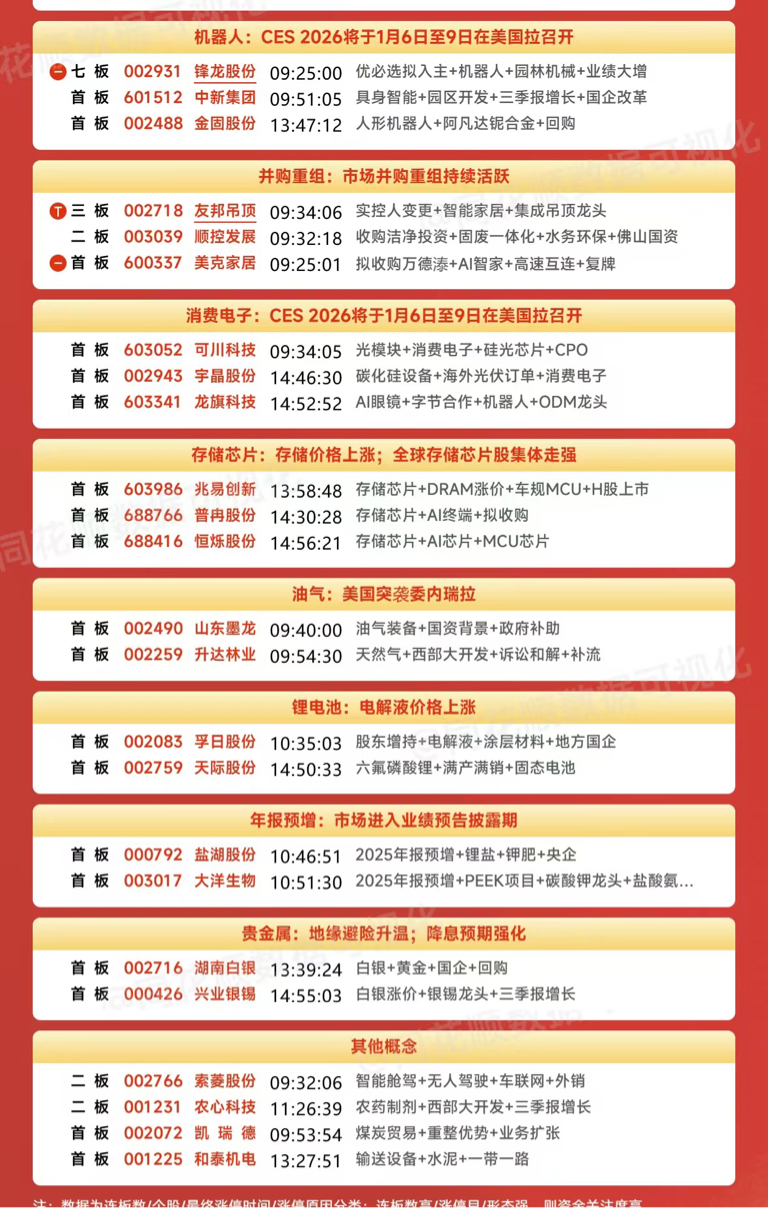 2026.1.5 游资龙虎榜&各大板块涨停个股复盘