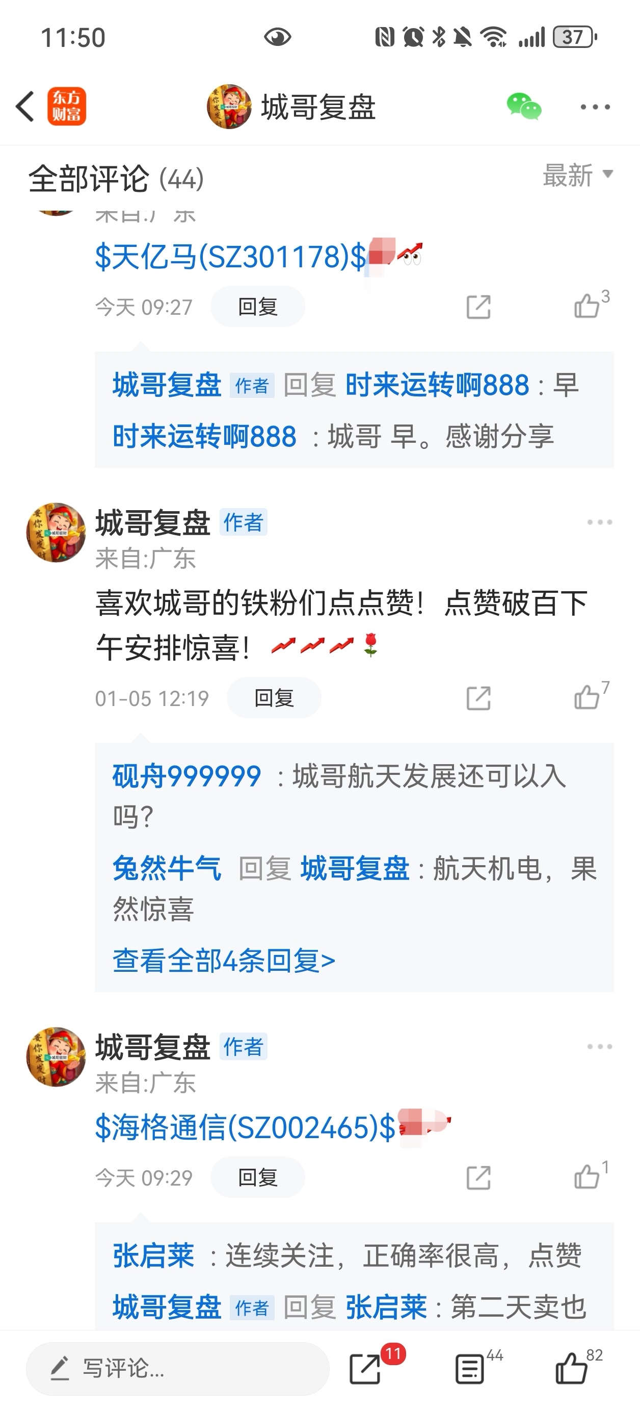 股友们大家早上好!今天是个好日子!目前持仓:$中国卫通(SH601698)$ $中国卫星(SH600118)$ $航天发展(SZ000547)$ 今天落袋为安了!手上还福龙马.东材科技.静待花开!今天早上进了天亿马.海格通信等表现!