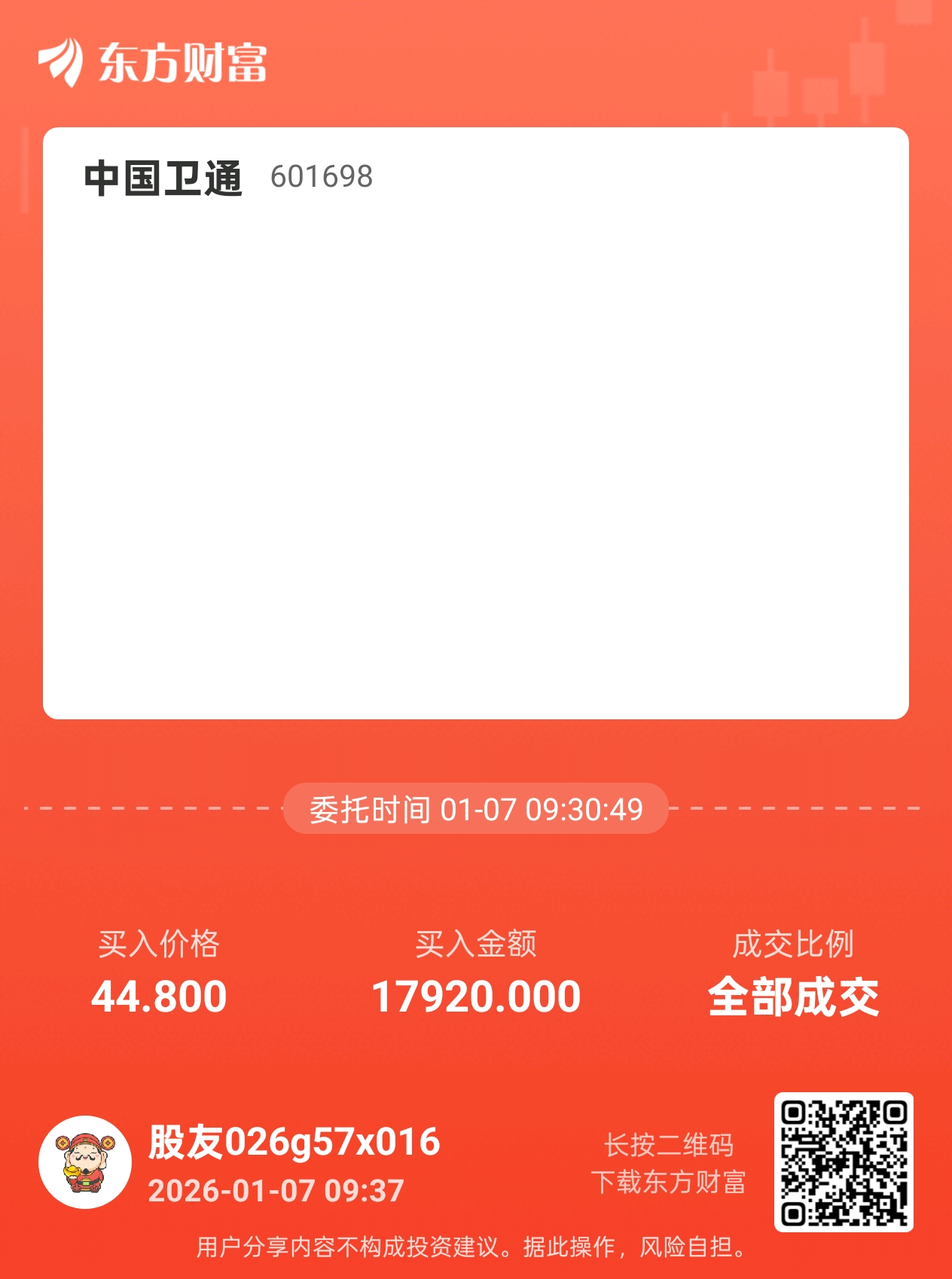 $中国卫通(SH601698)$ 买完立马就跌