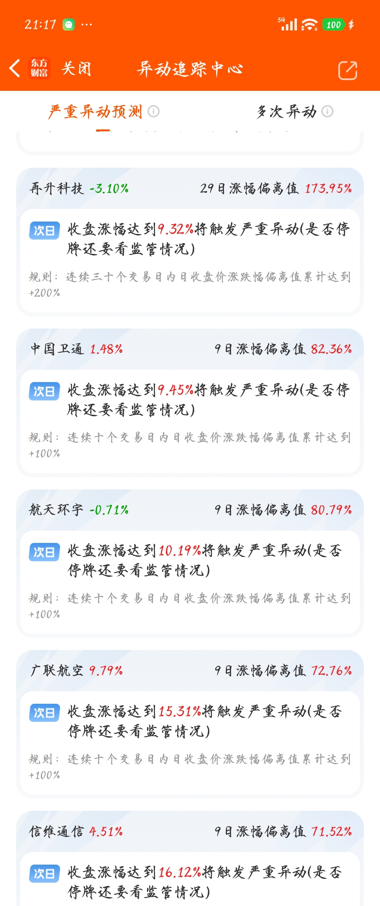$中国卫通(SH601698)$ 明天要卡10日异动吗