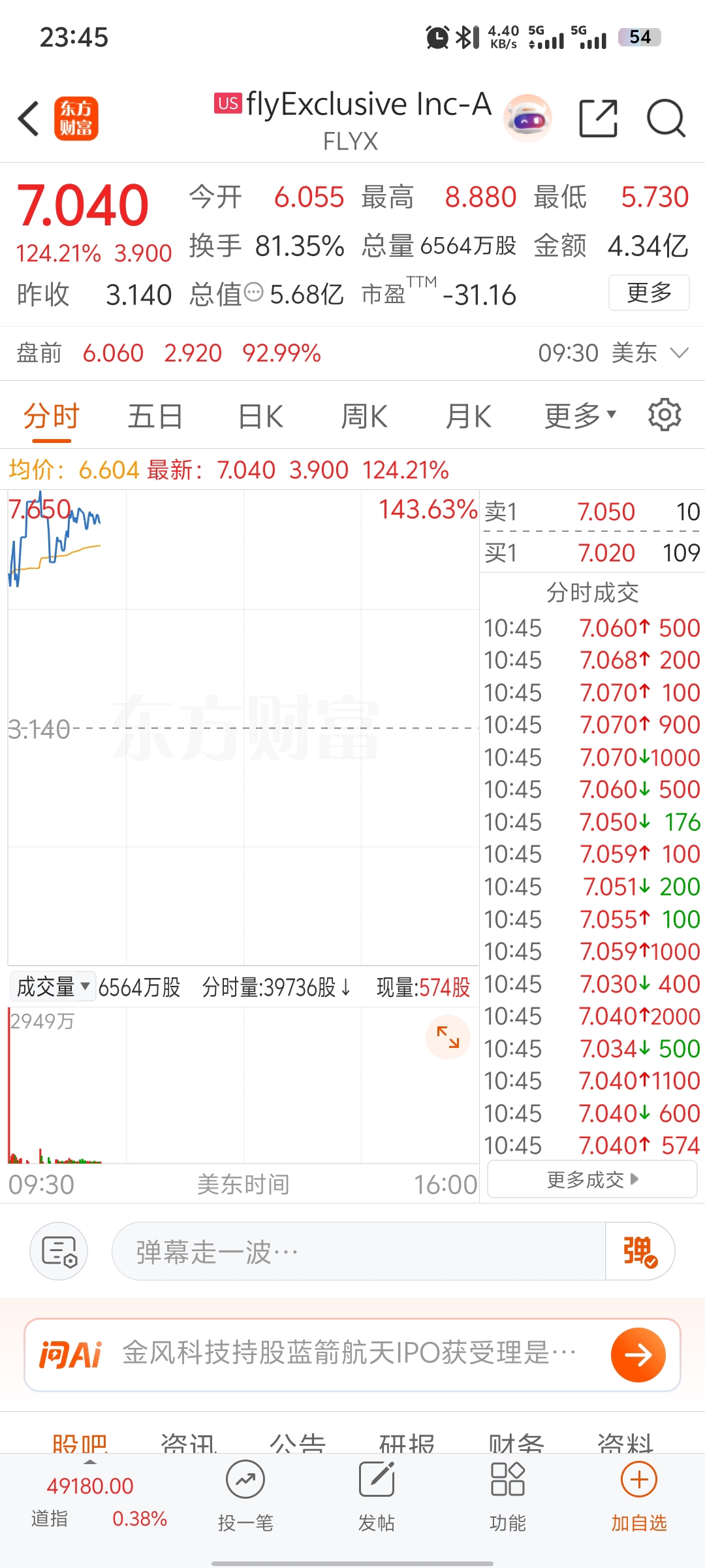 $中国卫通(SH601698)$ 美股大涨,明天就看你表现了