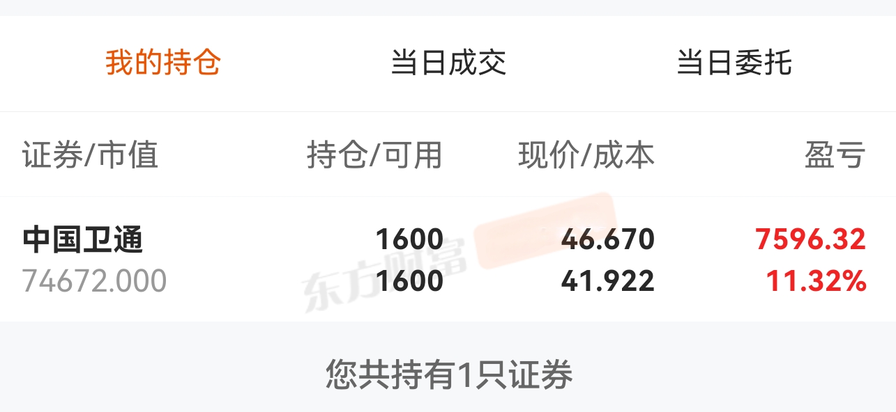 $中国卫通(SH601698)$ 赚太多了,不好意思,哈哈哈!