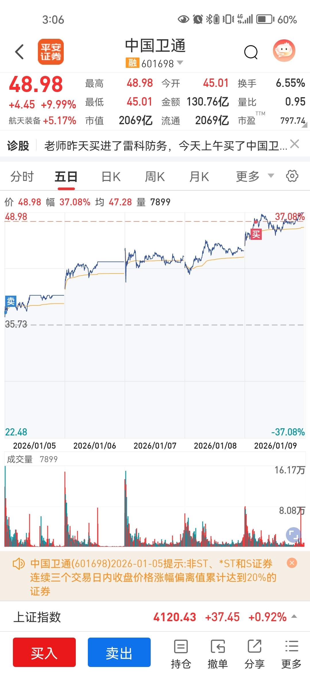 $中国卫通(SH601698)$ 卖了你,去外面晃了一圈回来又回来了